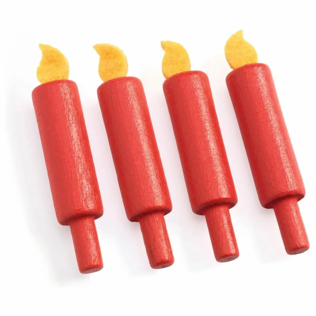 - 16 pièces : 4 parts de gâteau, 4 bougies, 8 accessoires pour décorer le gâteau.