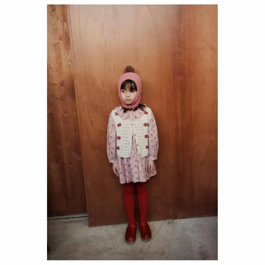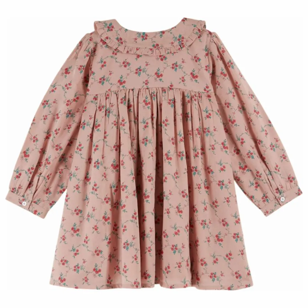 - Robe en coton orné de bouquets fleuris sur fond rose.