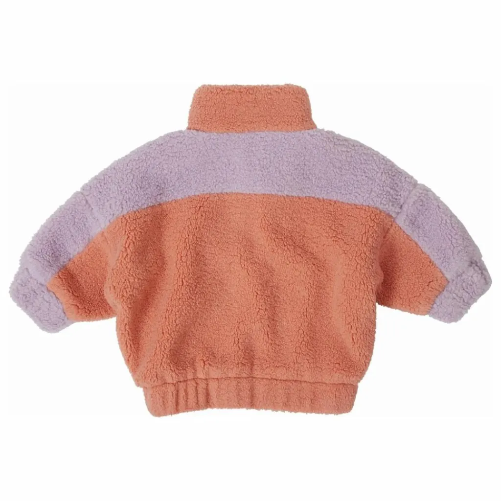 - Cette veste à panneaux en sherpa, qui nous rappelle les sensations chaleureuses de notre propre enfance, est dotée d’une coupe à manches tombantes et d’un col montant pour plus de chaleur.