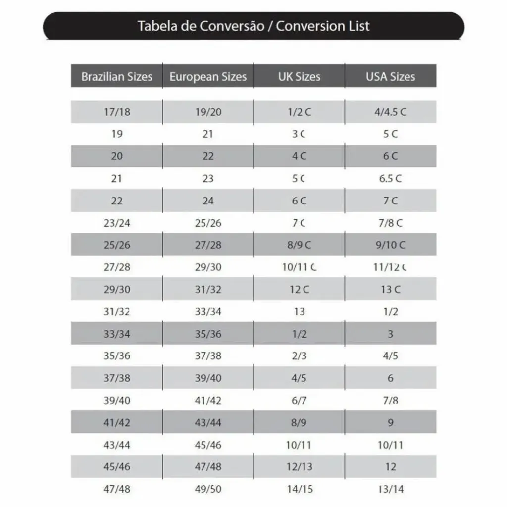 - Les tailles affichées sont des tailles brésiliennes