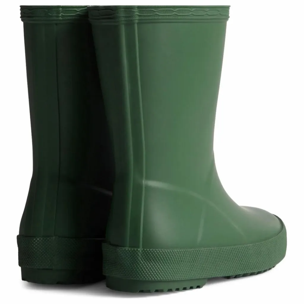 - La Kids First Classic Wellington Boot a été mise à jour avec une nouvelle semelle améliorée. Parfaites pour éclabousser les flaques d’eau, ces bottes noires pour enfants sont fabriquées à la main en caoutchouc naturel, entièrement imperméables et dotées d’une semelle texturée/zigzag plus profonde spécialement conçue pour réduire les risques de glissade. Avec une doublure en polyester 100 % recyclé et un bout arrondi qui permet aux petits pieds de bouger, elles assurent un confort total pour chaque aventure. Nous recommandons que toutes les bottes Hunter soient portées avec des chaussettes pour protéger la peau du porteur du contact avec le caoutchouc.