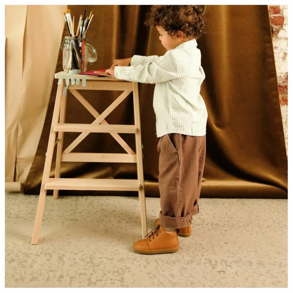- Les chaussures premiers pas Alphonse sont idéales pour accompagner les enfants qui marchent de manière autonome, tout en offrant une touche d’élégance grâce à leurs détails fleuris sur le dessus du pied et autour de la cheville. Fabriquées en cuir souple avec un tannage sans chrome et sans métal, elles respectent les peaux sensibles et assurent une bonne respirabilité. Leur semelle fine en caoutchouc, sans voûte plantaire, favorise une sensation de marche pieds nus, essentielle pour le bon développement du pied. Le montage cousu Strobel garantit une grande souplesse, et la fermeture zippée intérieure YKK, complétée par des lacets, permet un ajustement facile et précis.