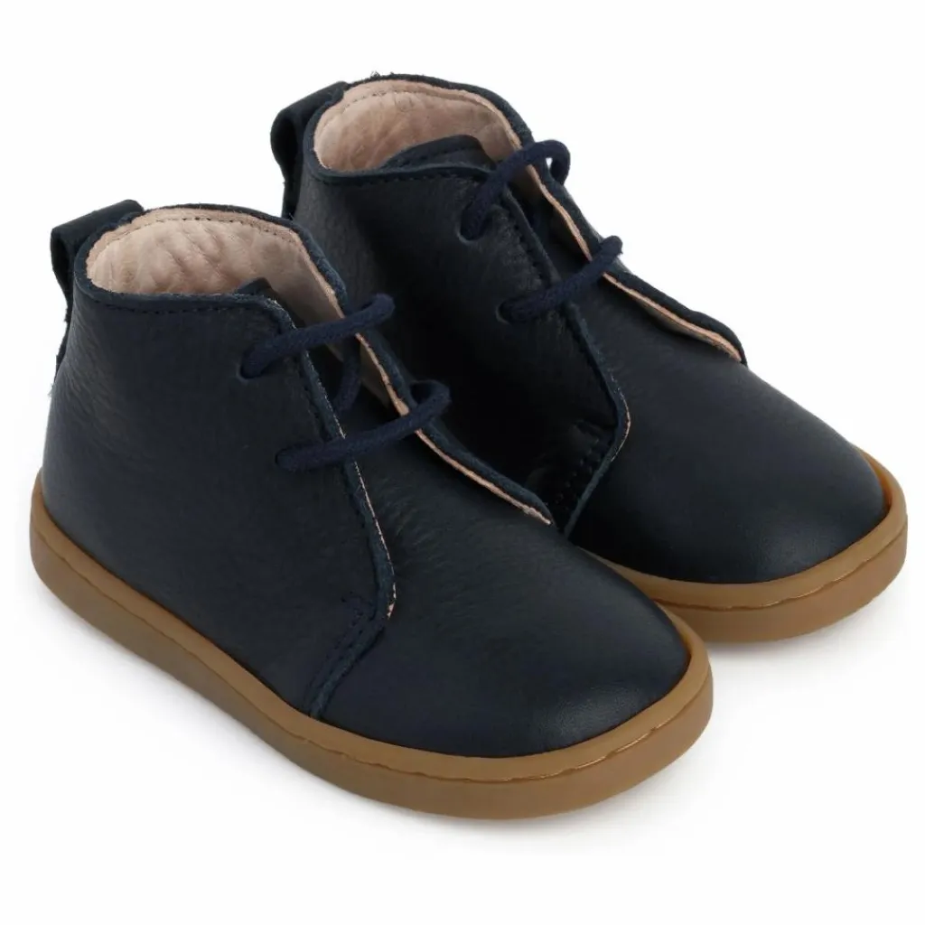 - Les chaussures premiers pas Raoul sont conçues pour accompagner les enfants ayant acquis la marche autonome.Inspirées des desert boots, elles allient style épuré et praticité. Leur fermeture à lacets en coton permet un ajustement précis, s’adaptant à toutes les morphologies de pieds. Fabriquées en cuir souple avec un tannage sans chrome et sans métal, elles respectent la peau sensible des tout-petits tout en assurant une bonne respirabilité. La semelle en caoutchouc souple, sans voûte plantaire, offre une sensation proche de la marche pieds nus, favorisant le développement naturel du pied. Le montage cousu Strobel garantit souplesse et durabilité.