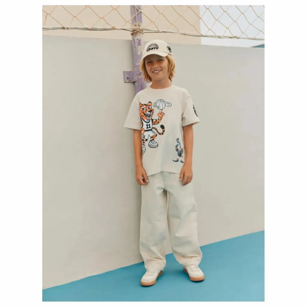 - Ce t-shirt allie confort et style. Confectionné en coton doux, il présente une coupe décontractée. Doté de manches courtes et d’une encolure côtelée, il affiche un imprimé ludique inspiré du basket-ball, accompagné du mot « Unity ». Parfait pour tous les jours, il encourage l’expression créative et l’amusement, ce qui en fait un élément essentiel de la garde-robe des jeunes.