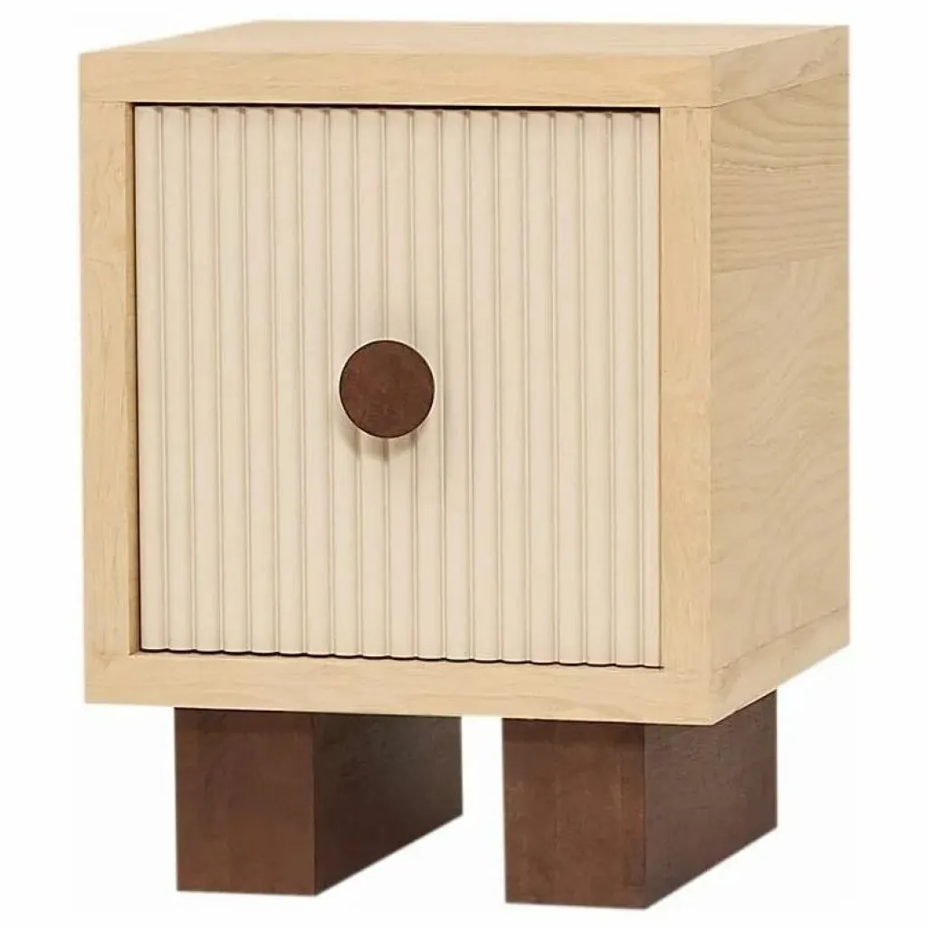 - Cette table de nuit, issue de la collaboration entre Nobodinoz et le Studio Heju, séduit par ses lignes épurées et ses finitions soignées. Une pièce intemporelle qui mélange subtilement le bois clair et bois teinté foncé et joue avec la lumière pour créer une atmosphère apaisante. Sa porte dotée de fins godrons texturés