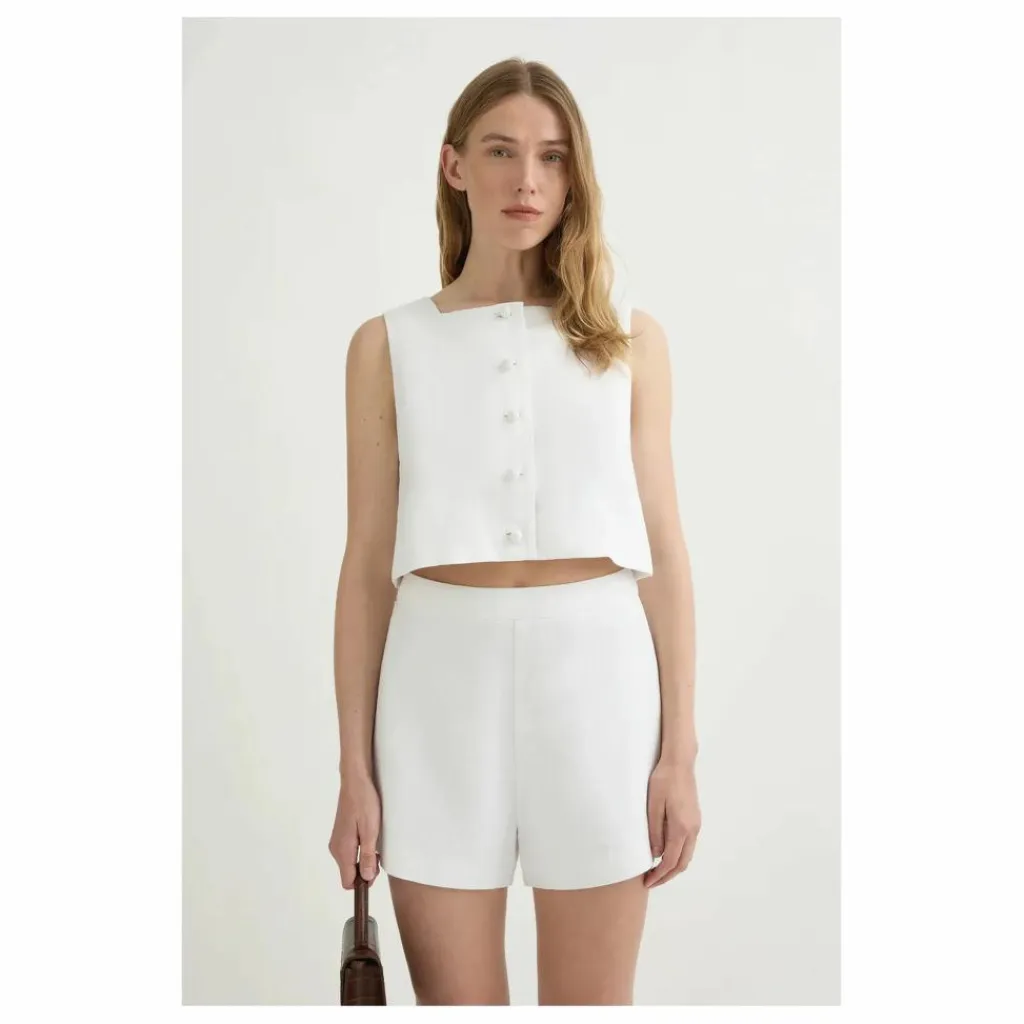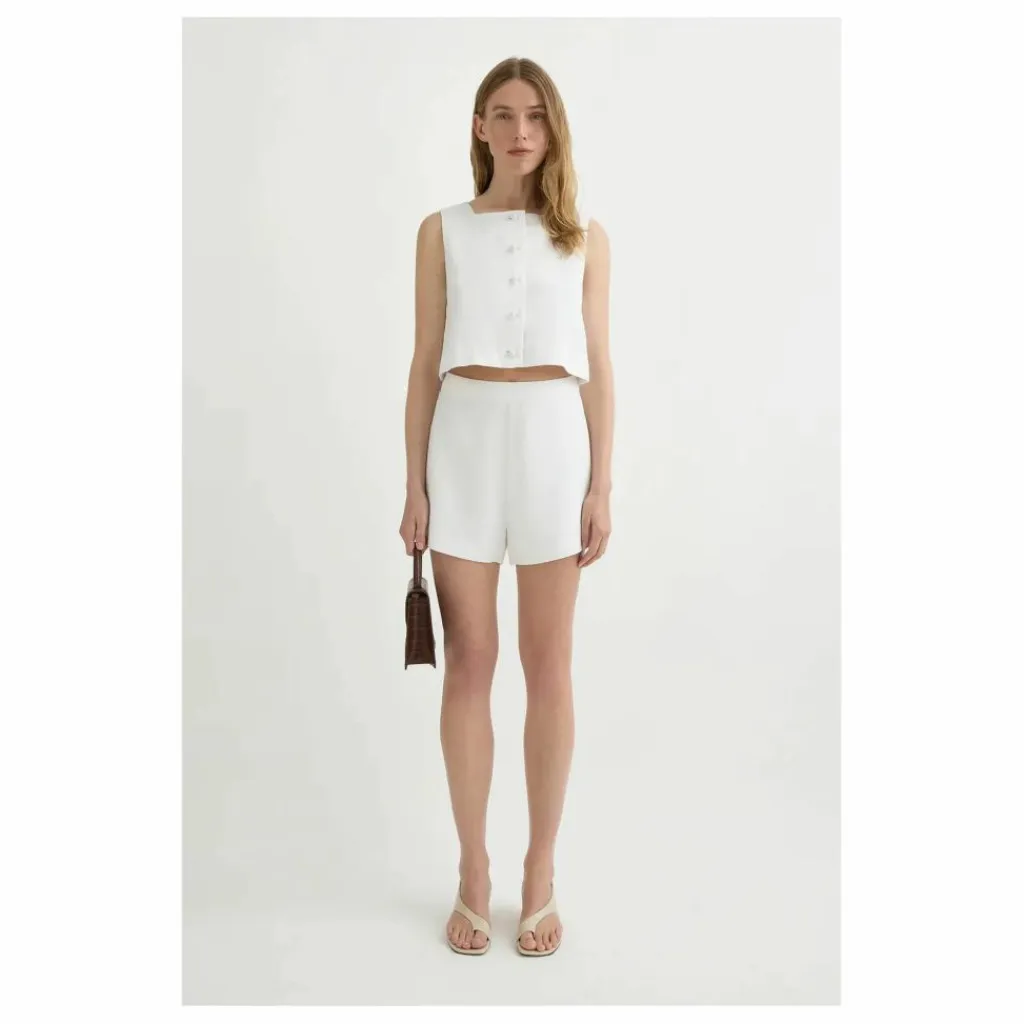- Confectionné dans un lin de poids moyen, le top Rio est taillé pour une coupe décontractée. Il présente une élégante encolure haute et se ferme par de chics boutons recouverts d’inspiration antique sur le milieu du devant.