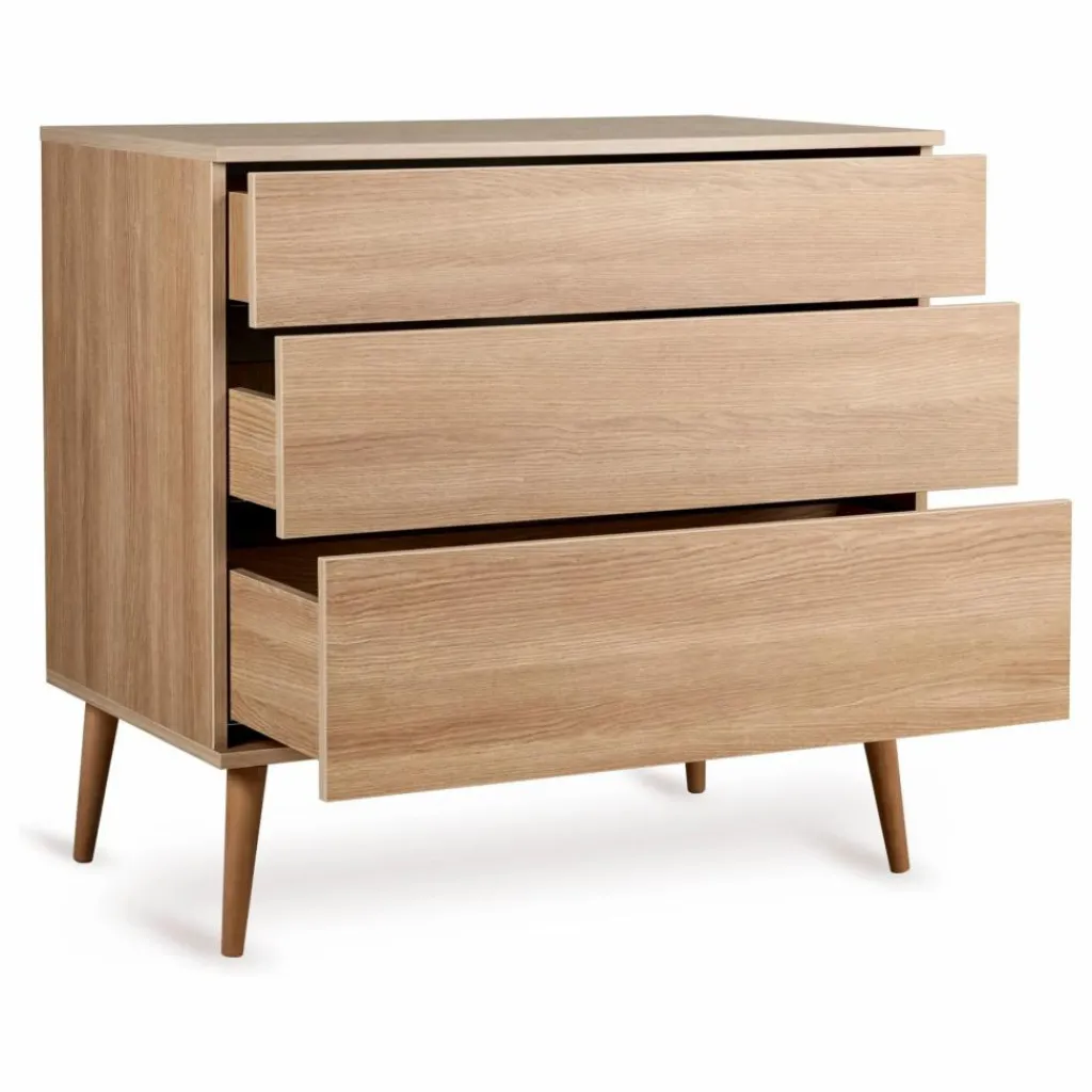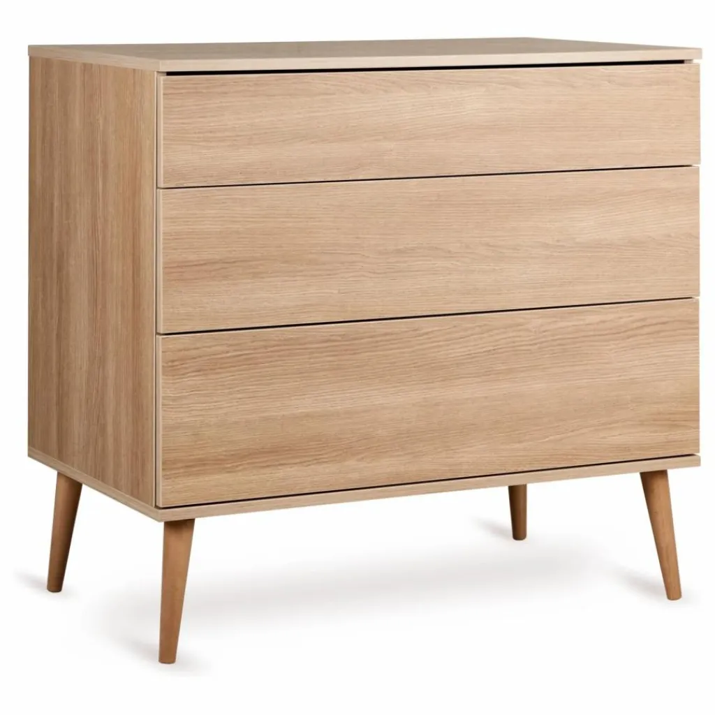- La commode Flow, synonyme d’élégance intemporelle, apporte une touche de raffinement dans la chambre de votre enfant tout en offrant un vaste espace de rangement pour les essentiels de bébé. Ses tiroirs s’ouvrent aisément grâce à un système de poussée, sans nécessiter de poignées. Cette commode, pensée pour allier esthétique et fonctionnalité, peut être équipée d’une extension (ref. 54F02-03001E) pour se transformer en table à langer, augmentant sa hauteur de 10 cm pour plus de confort. La surface de change, de 50×70 cm, est spacieuse. Fabriquée en bois de haute qualité certifié FSC, avec des pieds en hêtre massif et une structure en aggloméré mélaminé, elle mesure 96x58x92H cm, alliant luxe et praticité pour les soins de bébé.