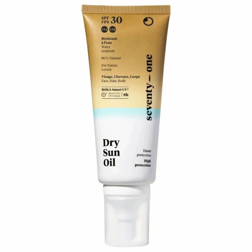 - Huile sèche à pénétration instantannée, non collante, fini satiné, protégeant contre UVA & UVB.