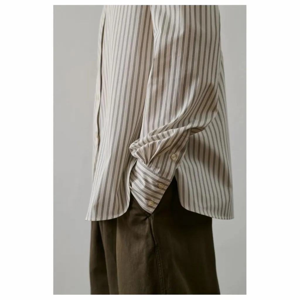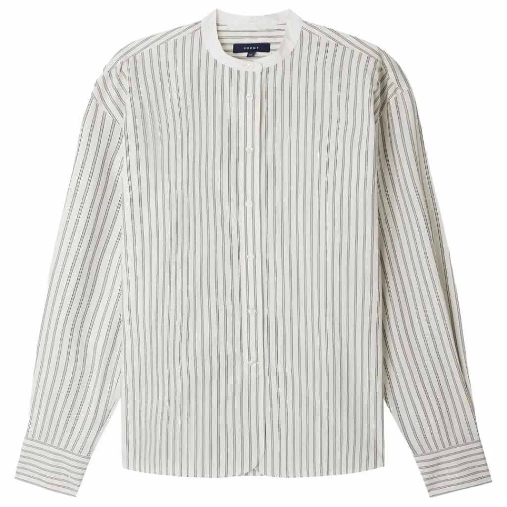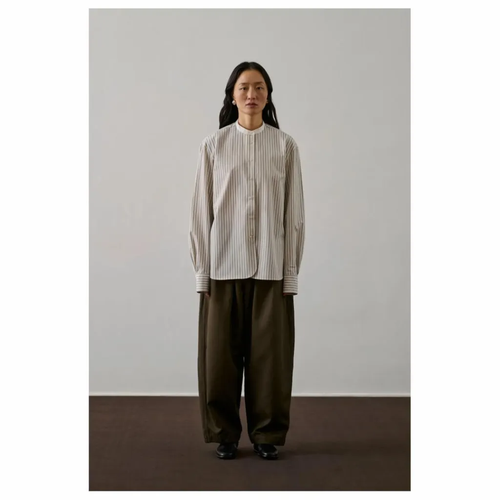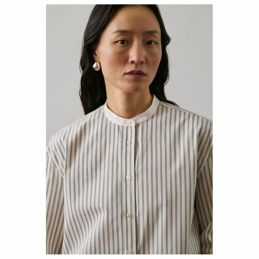- Chemise sans col en popeline rayée,Coupe oversize,Manches longues avec poignets de chemise boutonnés,Col contrasté en popeline blanche,Ouverture boutonnée,,Bas de vêtement forme liquette,,