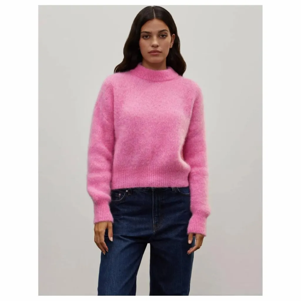 - Le pull Jane en mohair est coupé assez court. Il a été conçu pour tomber délicatement sur vos hanches. Le volume du corps et les hauts bord-côtes lui donnent un léger effet blousant.