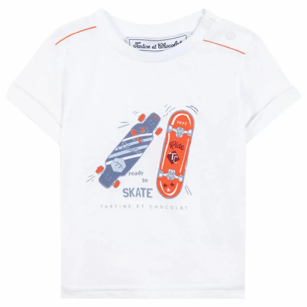 - Ce t-shirt spicy orange, orné d’une illustration dynamique de skate, est parfait pour les petits aventuriers. Confectionné dans une matière douce et confortable, il invite bébé à se lancer dans des aventures en toute liberté. Doté d’une ouverture latérale avec boutons-pression, ce t-shirt facilite l’habillage au quotidien. Une pièce élégante et pleine d’énergie, idéale pour compléter une tenue décontractée avec un short ou un pantalon. Fabriqué en Europe. CA10041-77