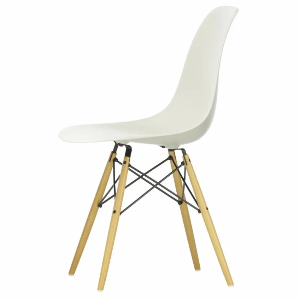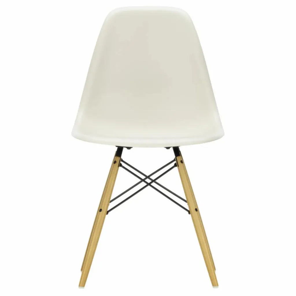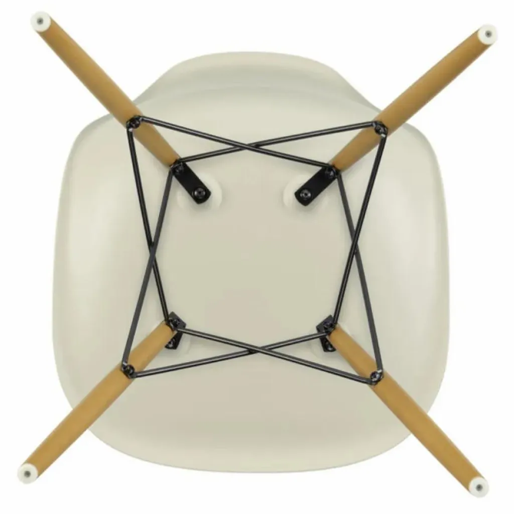 La chaise DAW (Dining Height Armchair Wood Base) a été conçue par Charles et Ray Eames, qui ont marié une coque d’assise aux formes organiques – désormais fabriquée par Vitra à partir de plastique recyclé post-consommation – à un piètement à quatre pieds en bois. Cette combinaison contrastée de plastique et de bois confère à cette création classique un aspect chaleureux et décontracté.