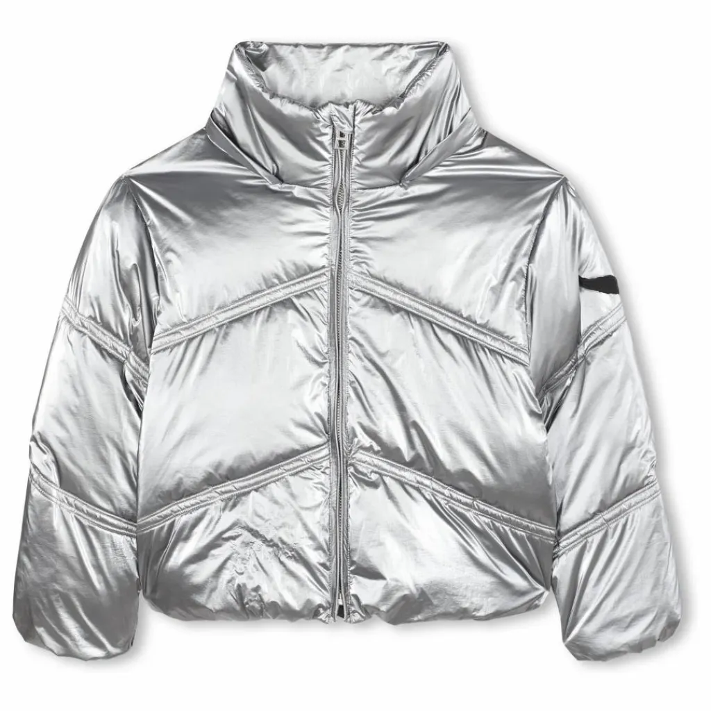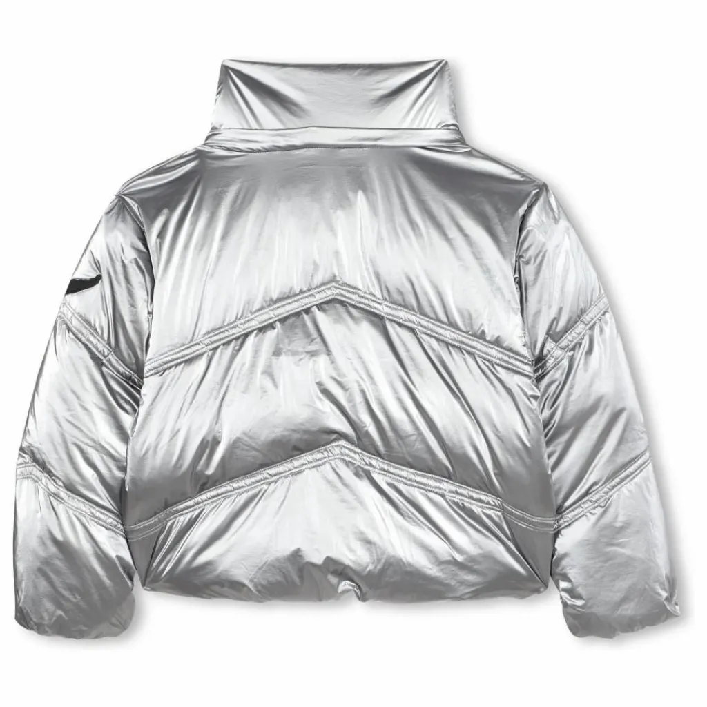 - Doudoune imperméable avec capuche détachable, fermeture zippée, couture en chevron, badge aile sur la manche.