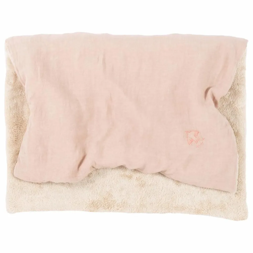 Dotée d’une face en lin français délicatement brodé et d’une face en fausse-fourrure extra-douce, elle est idéale pour les moments de détente, de lecture ou pour se blottir confortablement.