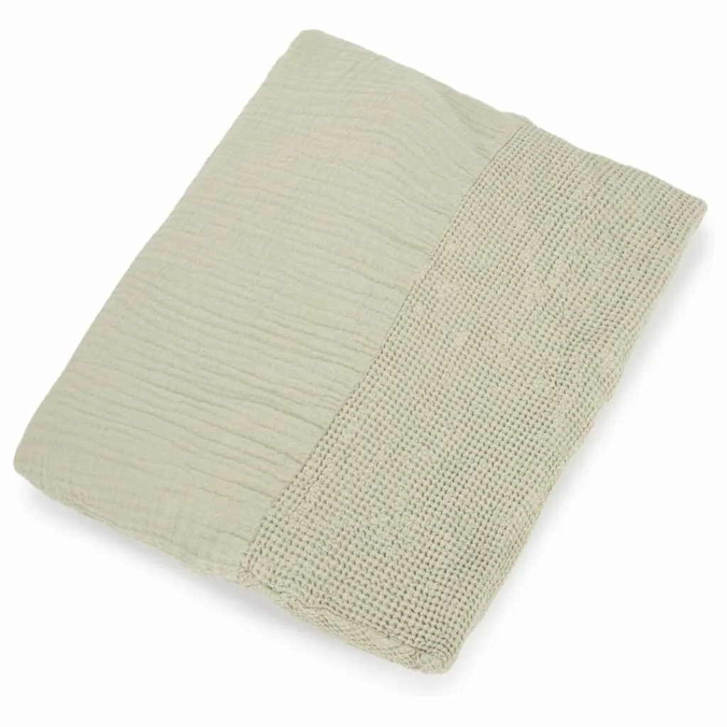• Double texture : l’élégance du nid d’abeille lavé combiné à la douceur de la double gaze de coton bio