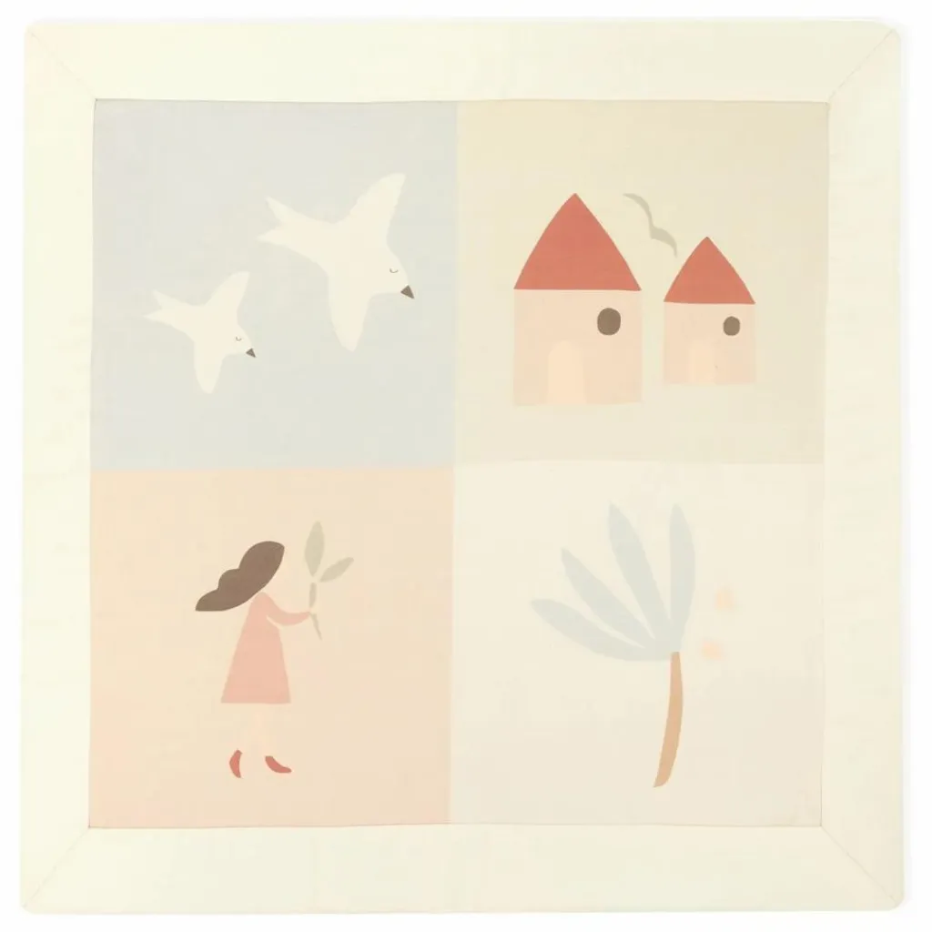 - Un tapis de jeu n’est pas seulement un espace délimité. C’est une toile qui favorise l’éveil des sens et la découverte du monde. Les belles illustrations invitent à l’imagination et à l’invention d’histoires, contribuant au développement du langage et de la capacité narrative des enfants. La collection « Playground » vise l’épanouissement sensoriel des bébés à travers une gamme de produits ludiques, conçus pour stimuler l’imagination et favoriser l’apprentissage par le jeu. « Playground » combine design, fonctionnalité et poésie pour soutenir le développement des tout-petits de manière créative, engageante et sécurisée.