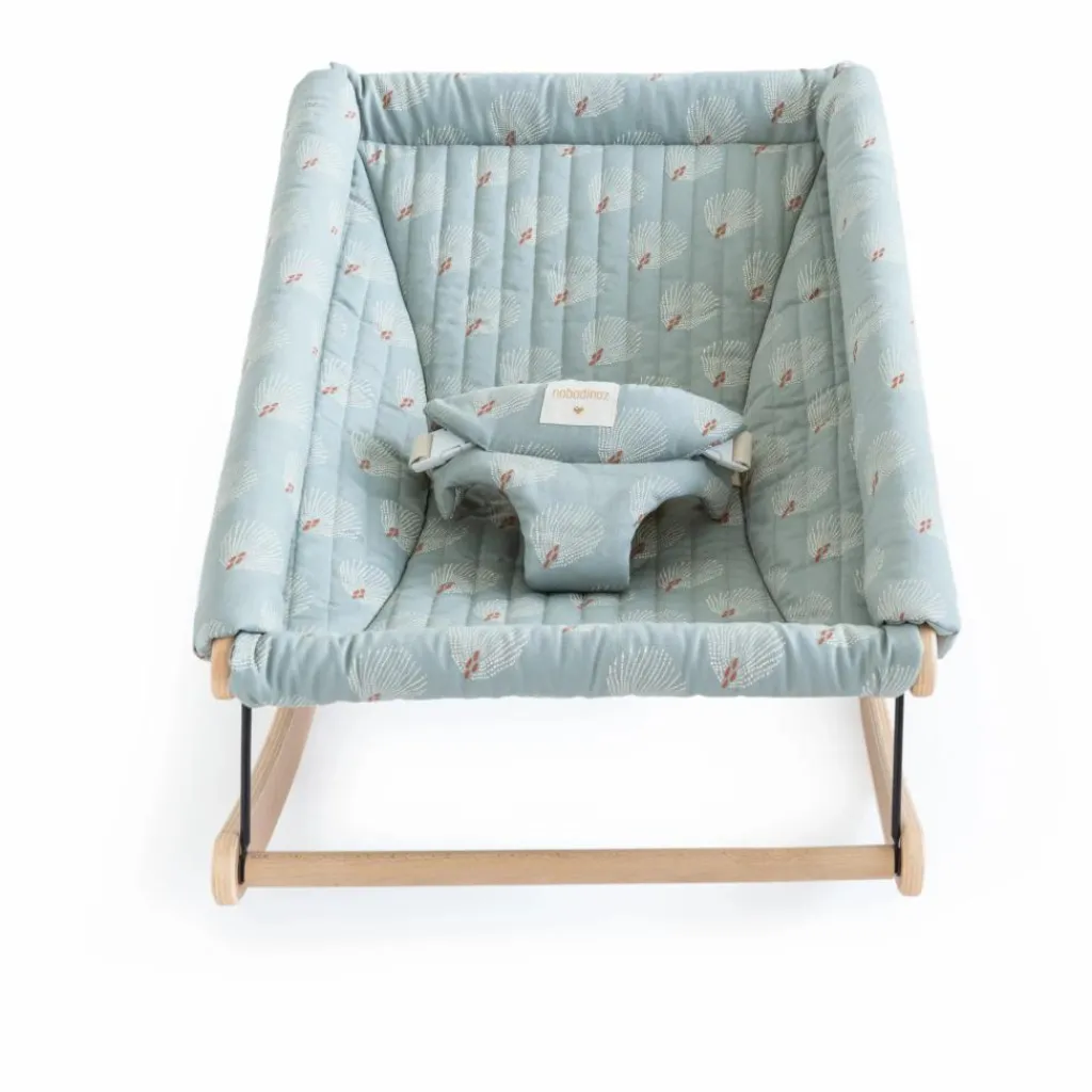 Growing Green, la gamme de mobilier évolutif et design aux matériaux naturels pour enfants. Accueillez votre bébé dans un cocon de douceur, confortable et sécurisé, qui offre un mouvement de bascule suave et relaxant. Il est léger et facile à déplacer dans votre intérieur. Fait de matières naturelles, en bois de hêtre massif au vernis mat et en coton bio matelassé, il est solide et spacieux, parfait pour accompagner votre bébé de sa naissance jusqu’à ses 9kg. L’assise en coton bio se fixe à la structure en bois grâce à de résistantes fermetures éclair.