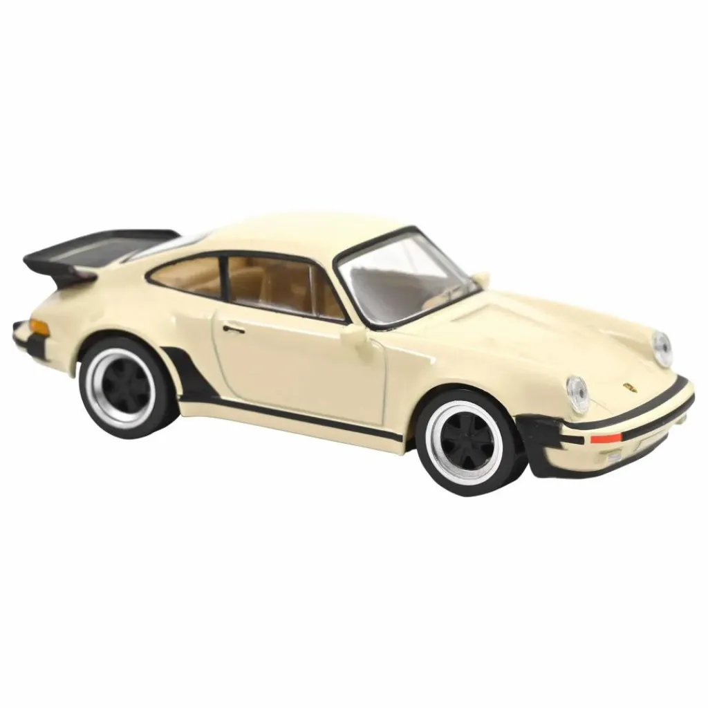 Avec des ailes arrières « gonflés » et avec un gros aileron à l’arrière, la voiture a un look sportif indéniable.Notre jouet reprend une version de la 911 turbo 1978, dans une peinture Beige clair et un intérieur crème.