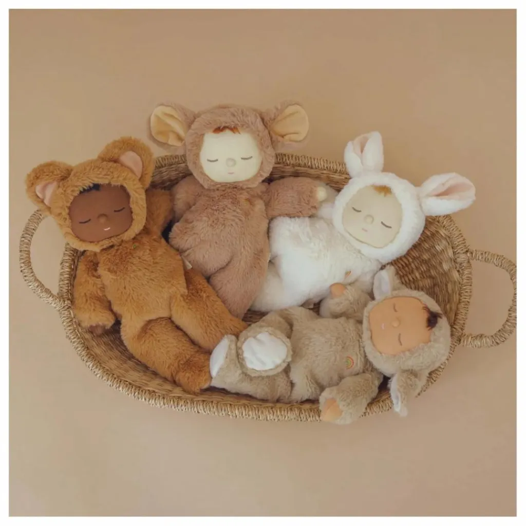 Ce doudou articulé Cozy Dozy Dinkum est un parfait cadeau de naissance qui accompagnera les petits longtemps. Il peut être placé dans de multiples positions de sommeil, sa tête, ses bras et ses jambes étant reliés à son corps par des bandelettes de tissu.