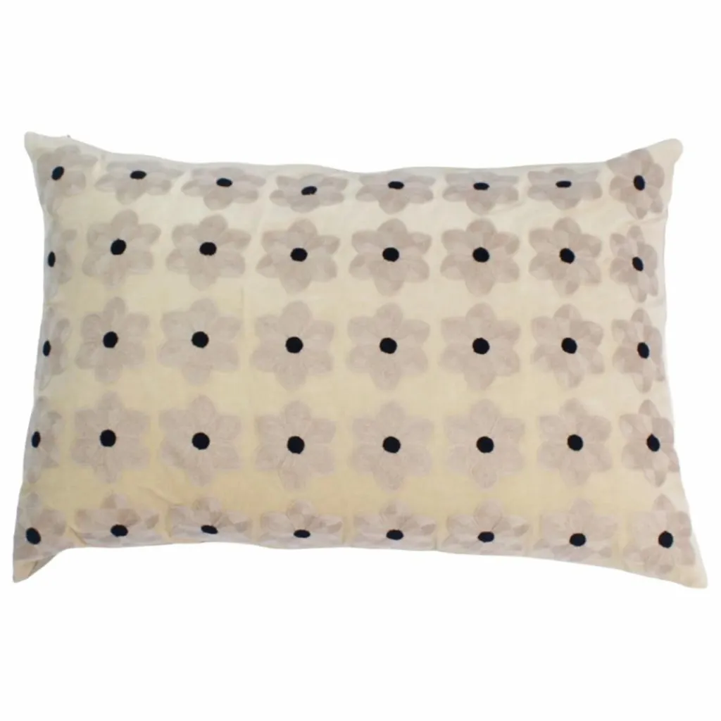 - Housse de coussin en coton/velours avec fleurs brodées et dos en chambray de coton.