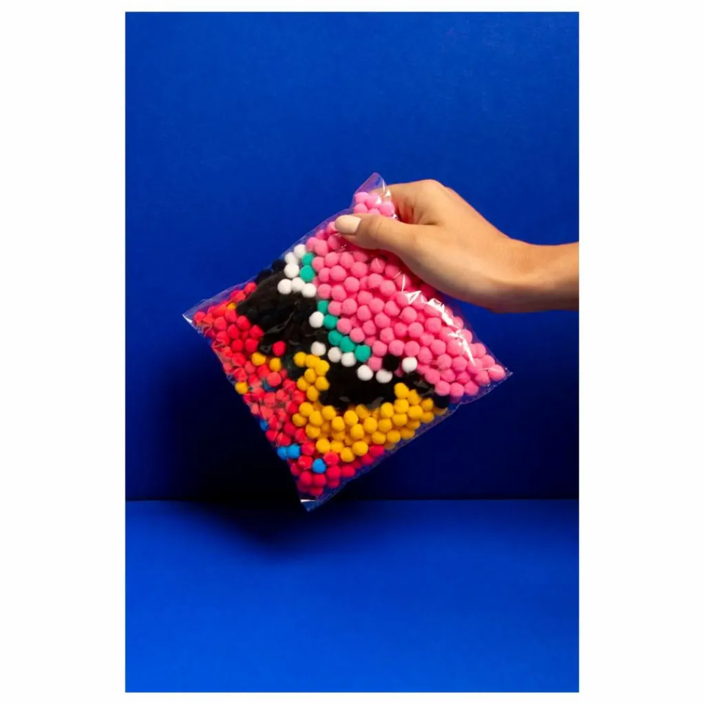 Ce kit permet de réaliser un tableau tout doux et mignon à l’aide de plus de 500 pompons colorés et fluos !