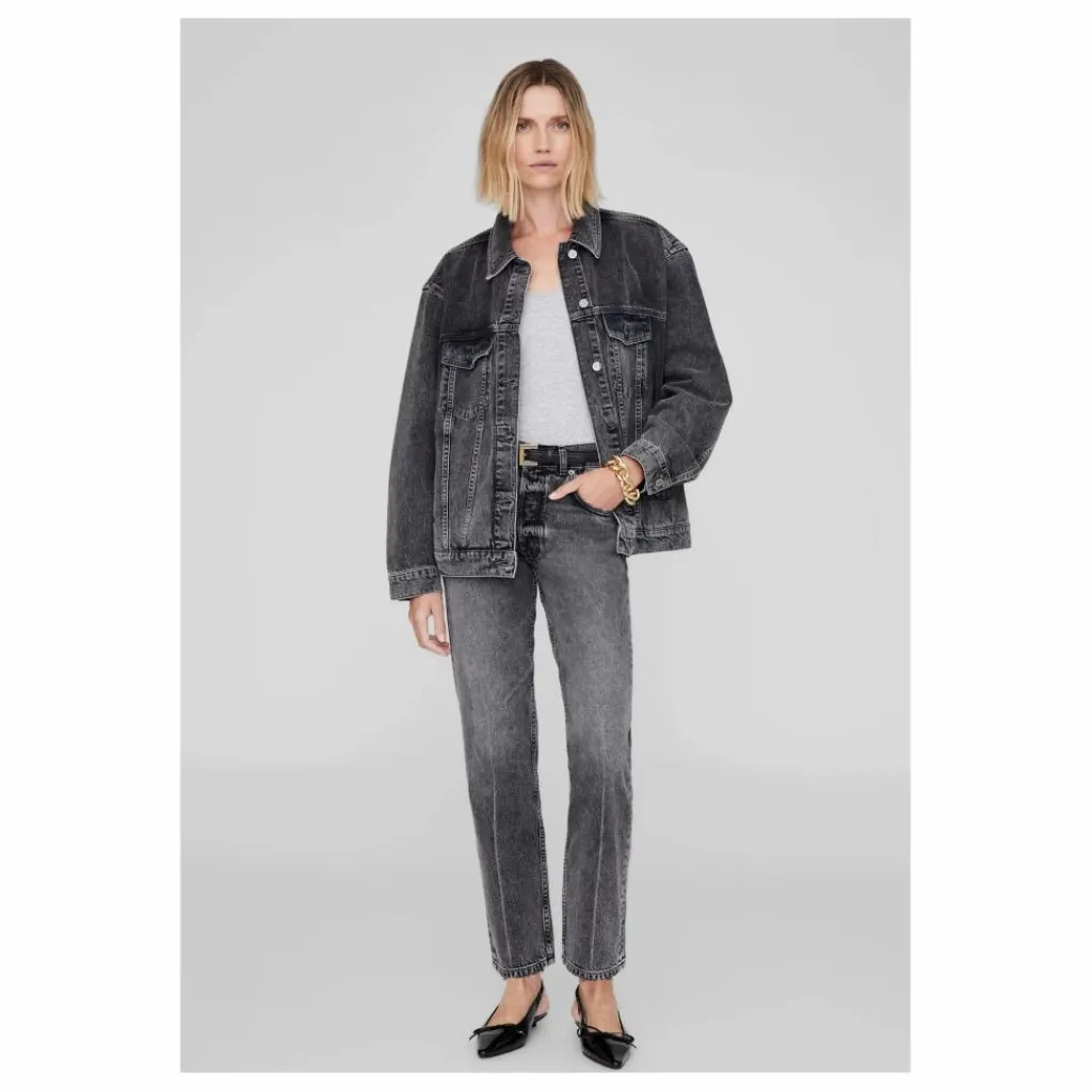 - Notre veste Rory signature a été réactualisée dans un mélange de denim de coton rigide de poids moyen, sans élasticité, avec un délavage gris anthracite et des abrasions d’inspiration vintage sur l’ensemble du tissu. Cette veste de tous les jours présente des coutures contrastées et des boutons pression argentés sur le devant.