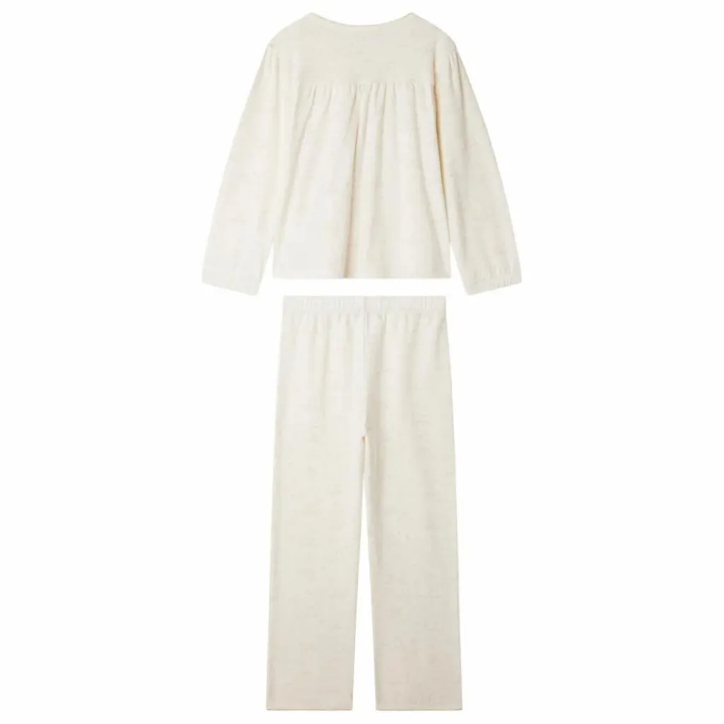 - Le pyjama Jucie pour fille est très confortable avec son bas de jambe large, son col rond boutonné et ses poignets froncés. Il est confectionné en coton biologique.En coton biologiqueDécoupe et fronces sur le busteAvec pochette à cordon