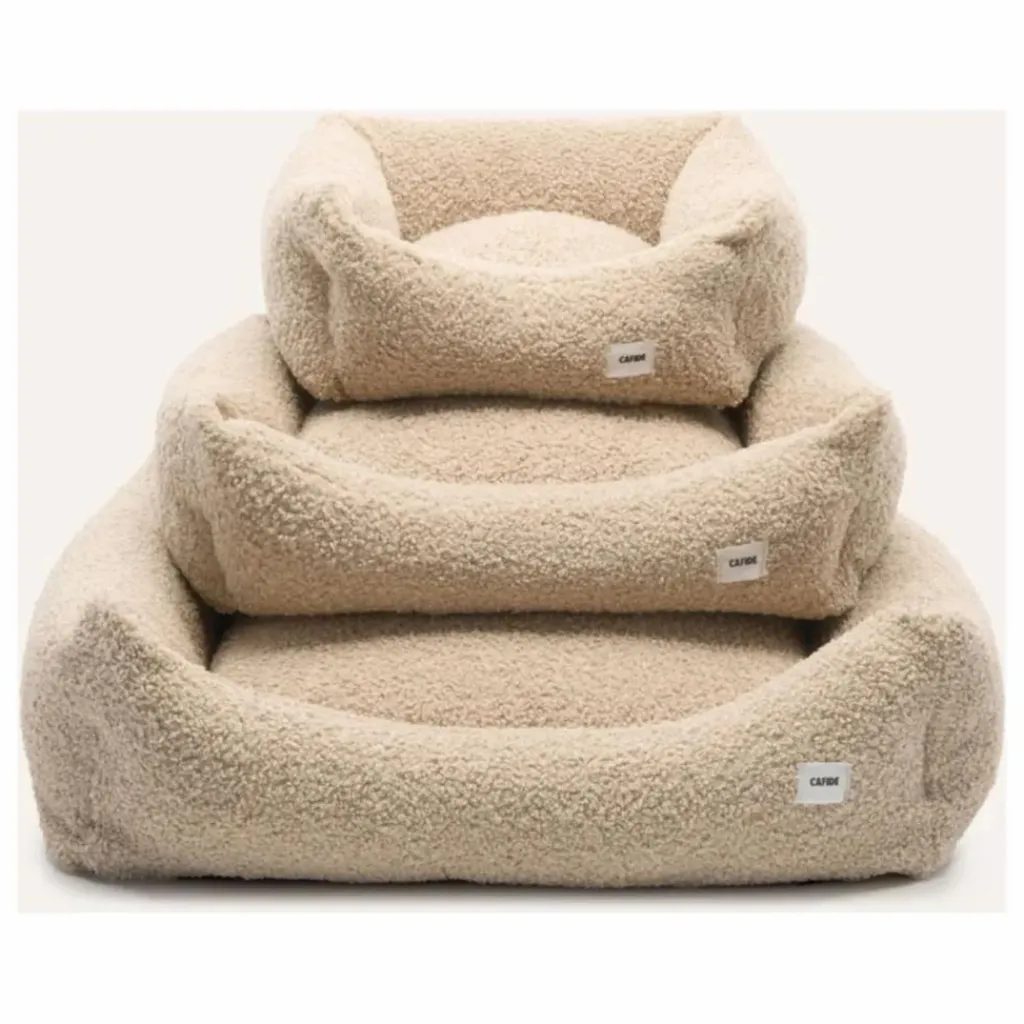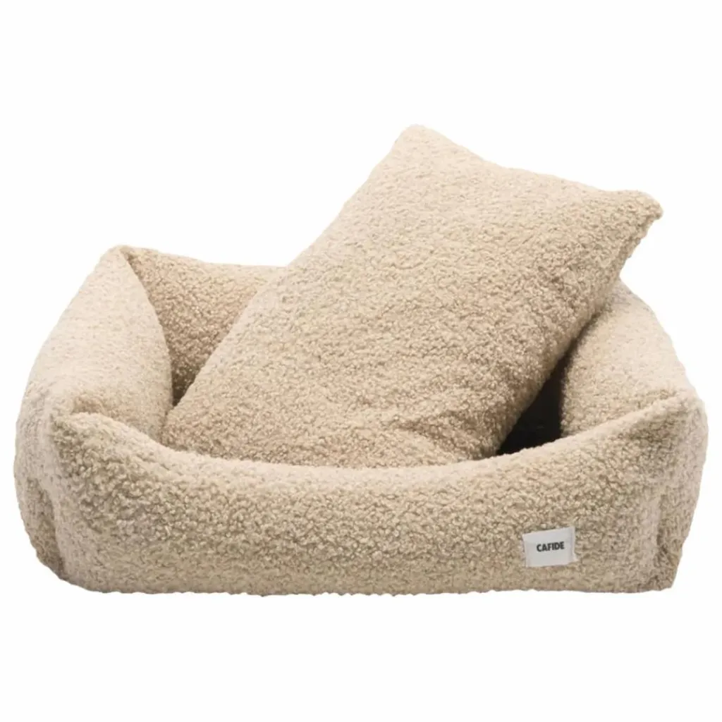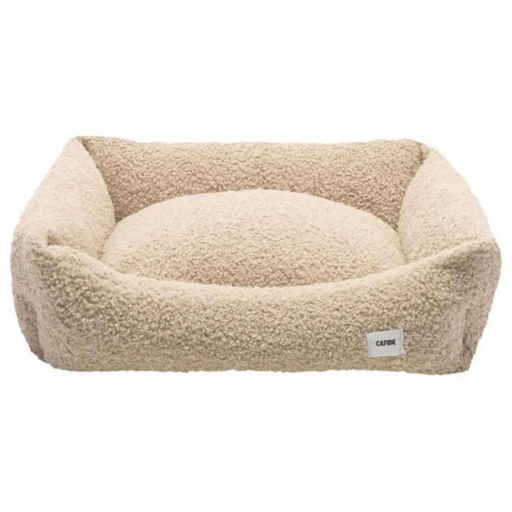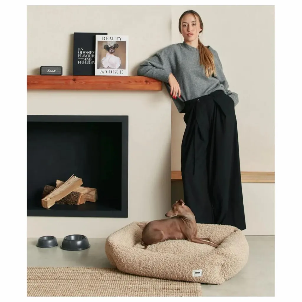 - Lit pour chien amovible et lavable en tissu simulant la peau de mouton et fabriqué en Europe.