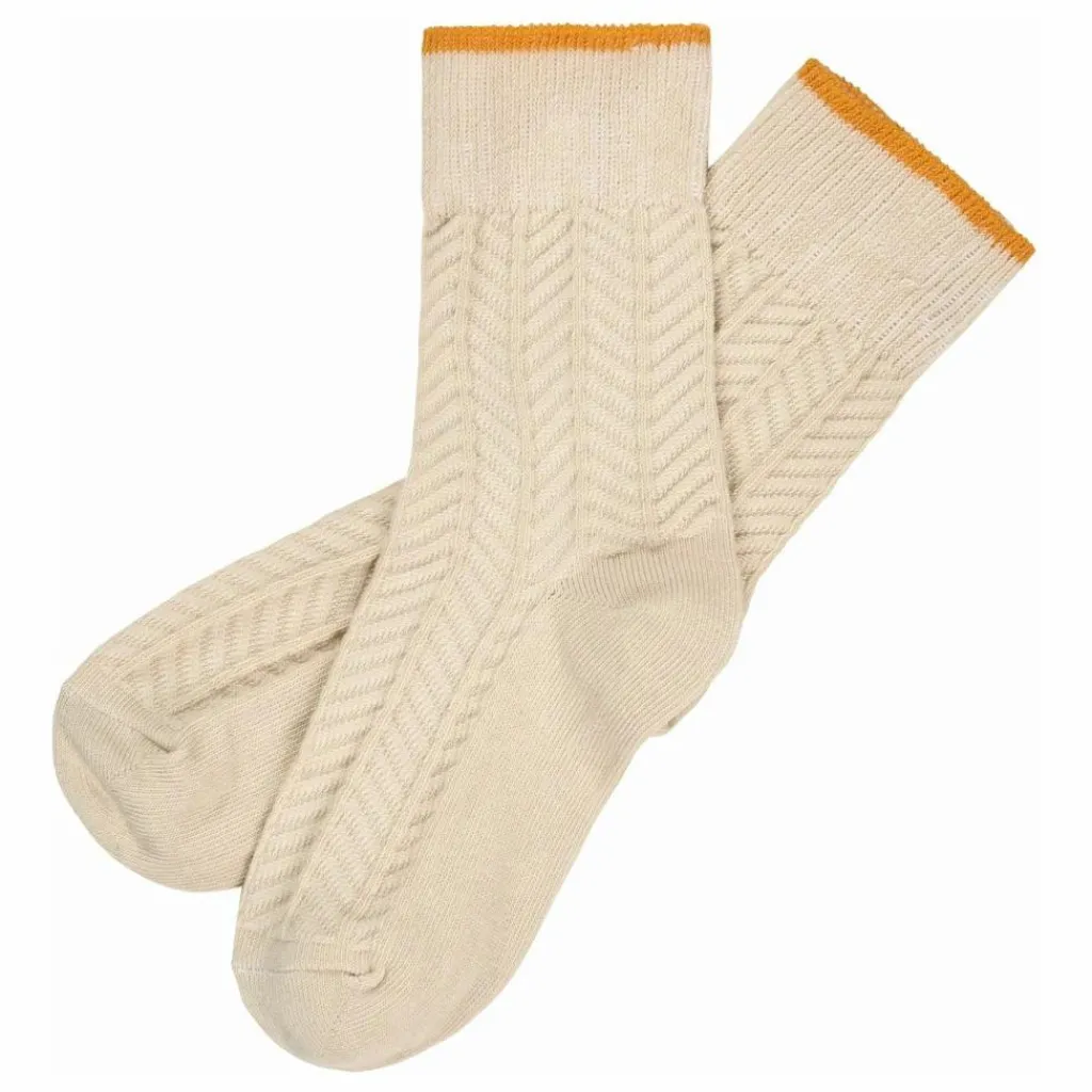 - Fabriquées à partir d’un fil de coton certifié OEKOTEX mélangé à de l’élasthanne pour la durabilité et une bonne récupération, ces chaussettes sont tricotées dans une structure décorative à chevrons. Les chaussettes sont renforcées au niveau des orteils et du talon et ont un revers ferme avec un bord de couleur contrastée sur le dessus. 80% coton, 17% polyamide, 3% élasthanne (OEKOTEX)