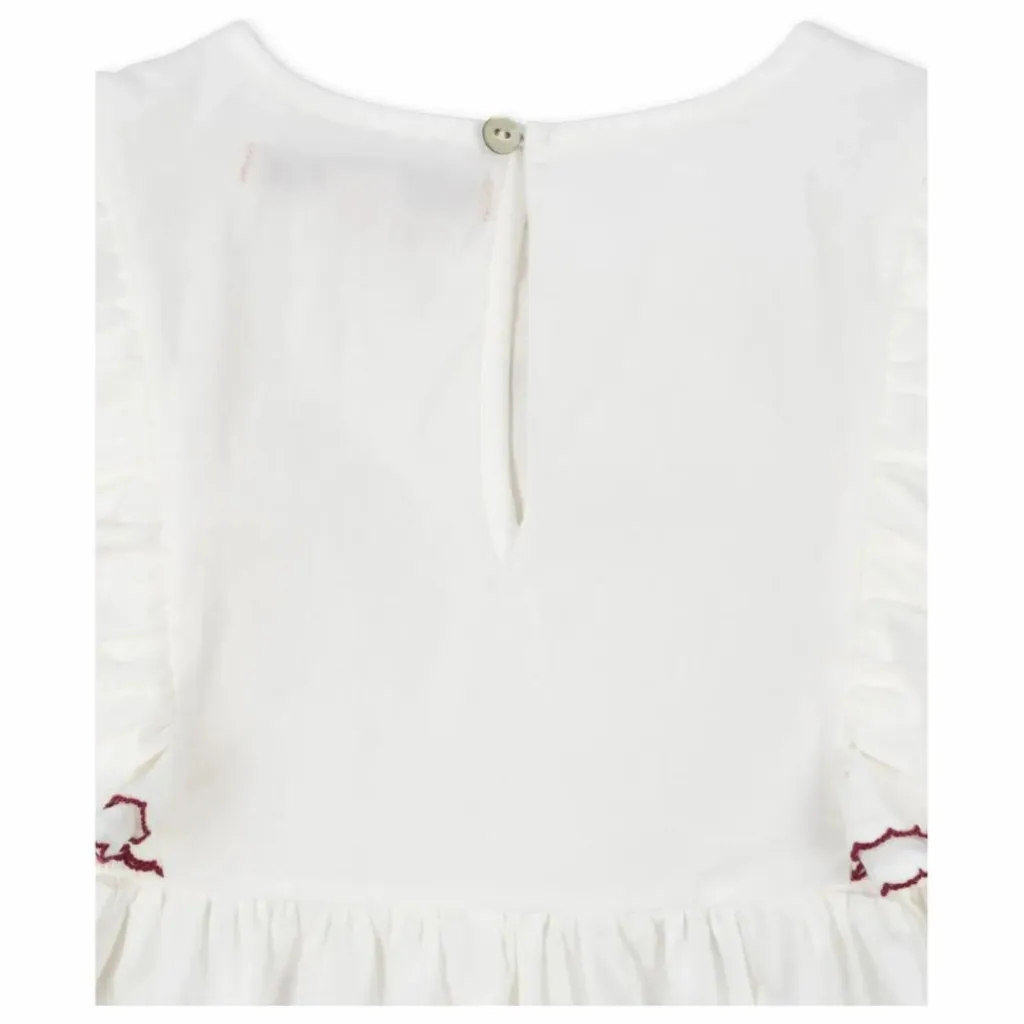 - Robe en coton tissé avec volants décoratifs aux épaules et jupe évasée.