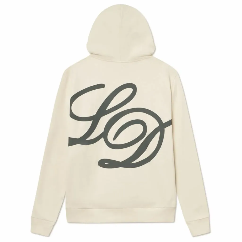 - Sweat à capuche ample et ajusté en tissu éponge texturé avec un grand logo LD en cursive imprimé au dos.