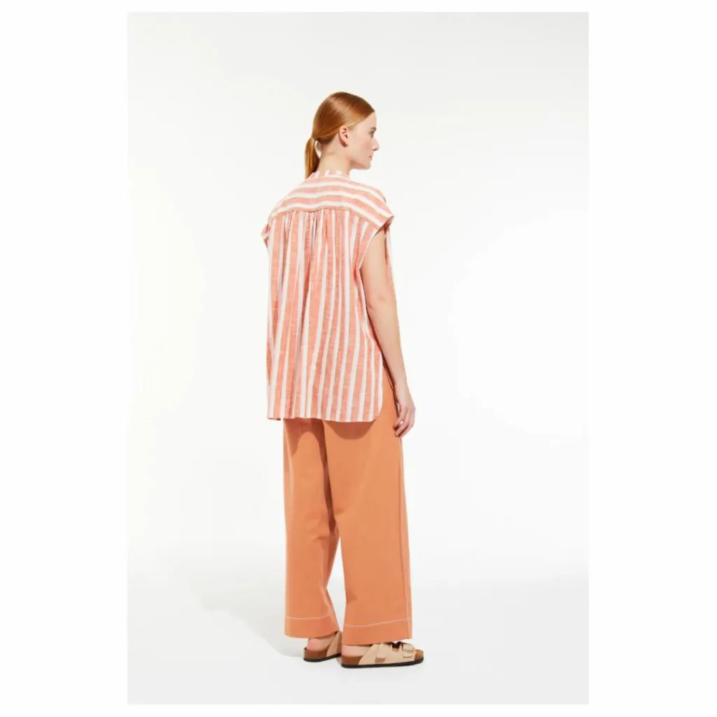 - Encolure ronde, Fluide, Manches courtes, Col montant