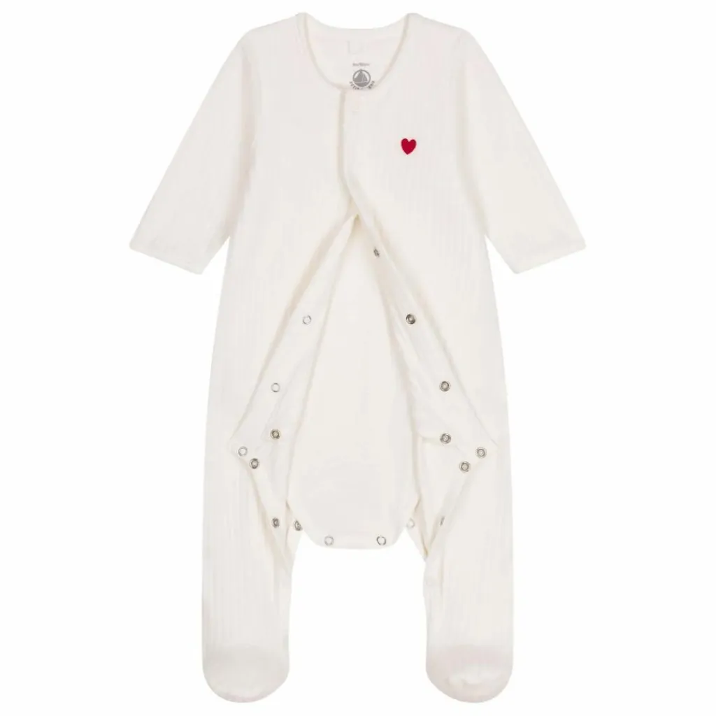 - Un super pyjama 2 en 1 : un dors-bien à ouverture pressionnée sur le devant + un body intégré.Pratique et confort, il facilitera le change et vous simplifiera la vie.Grâce à son unique ouverture pressionnée sur le devant, le bodyjama est facile à enfiler.Broderie cœur en poitrine