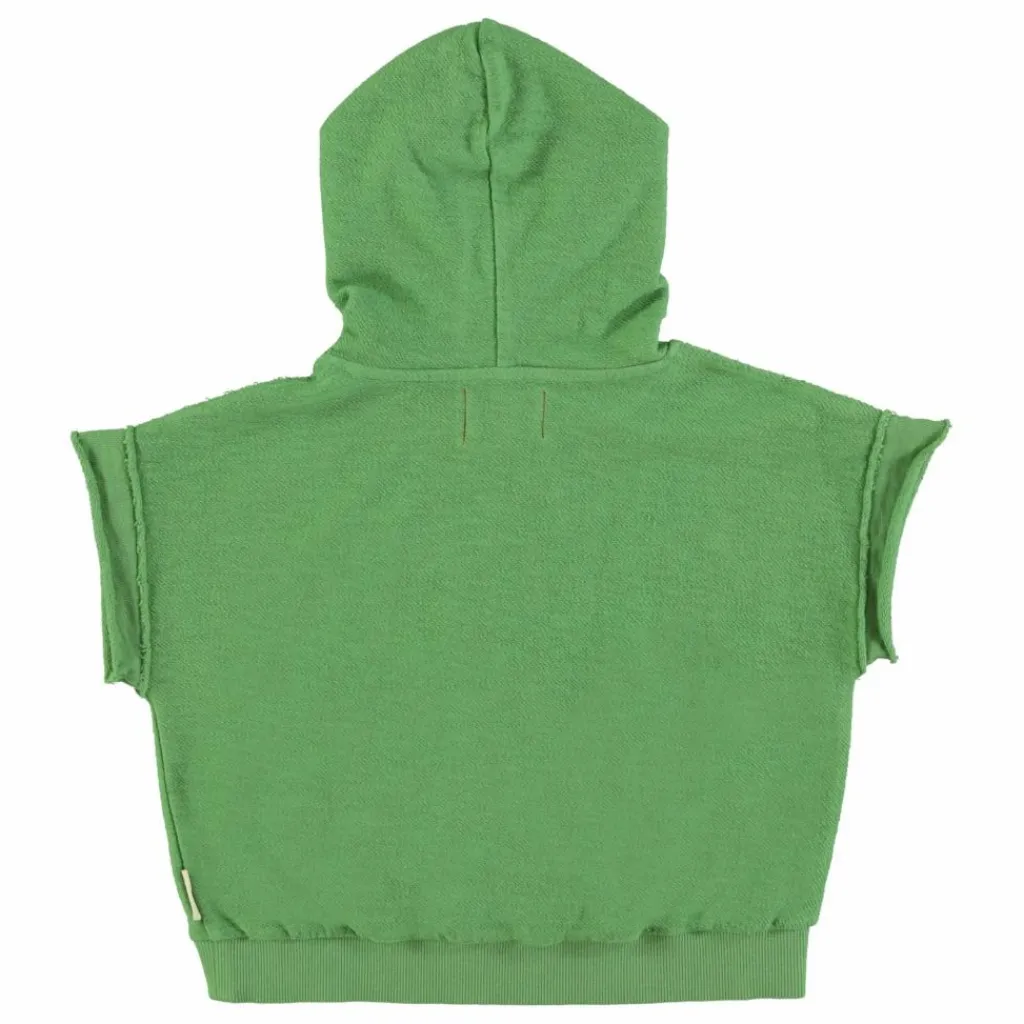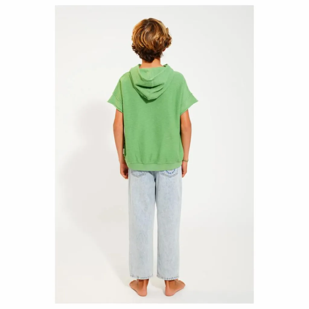 - Sweat à capuche sans manches en molleton de coton flamé (texture extérieure) avec impression sur le devant. Ourlet côtelé. Poche de rangement.