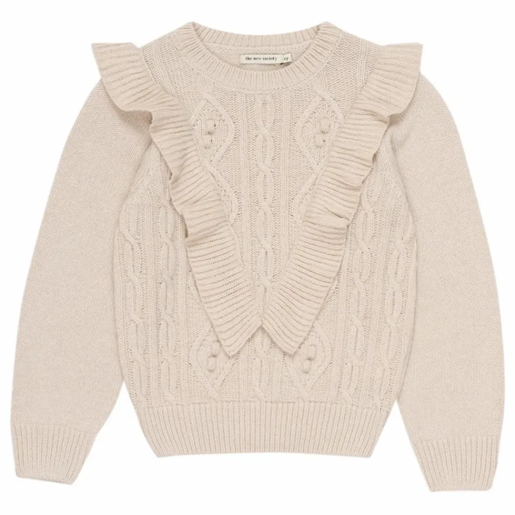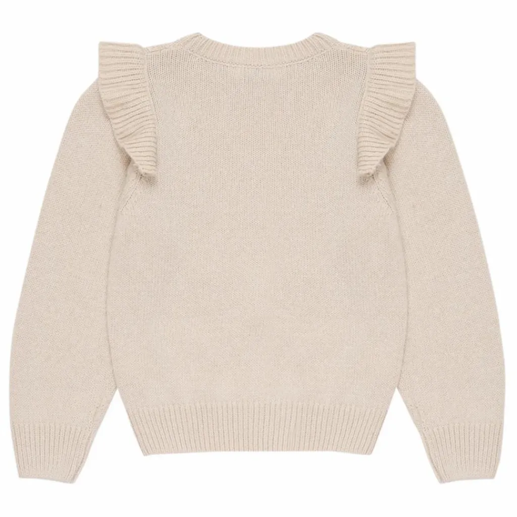 - Encolure ronde, Manches longues, Bords-côtes, Volanté, Jeux de maille