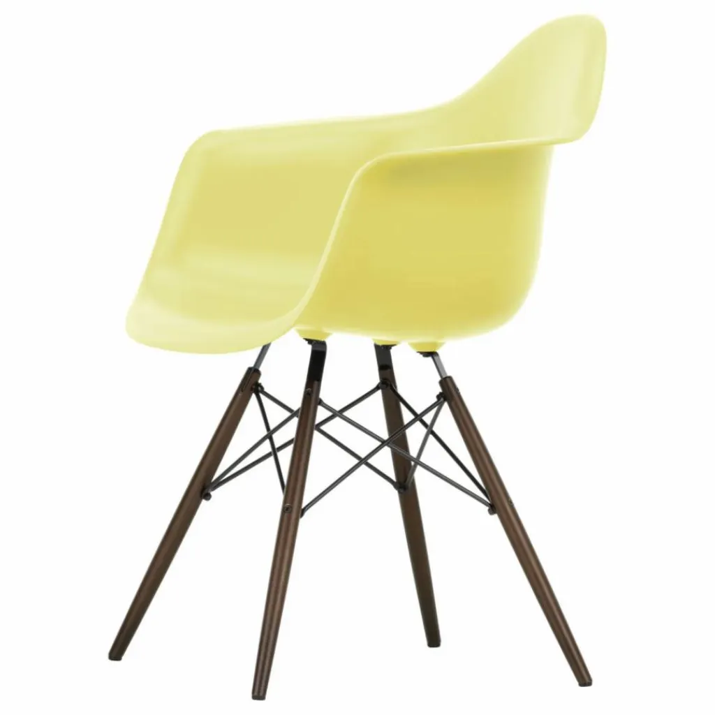 La chaise DAW (Dining Height Armchair Wood Base), conçue par Charles et Ray Eames, est un exemple emblématique d’un siège dont la coque peut être associée à différents types de piètements. Son piètement en bois crée un contraste intéressant avec la coque en plastique recyclé post-consommation. Cette combinaison de matériaux offre non seulement un aspect visuel attrayant, mais elle contribue également à la durabilité de la chaise en utilisant des matériaux recyclés.