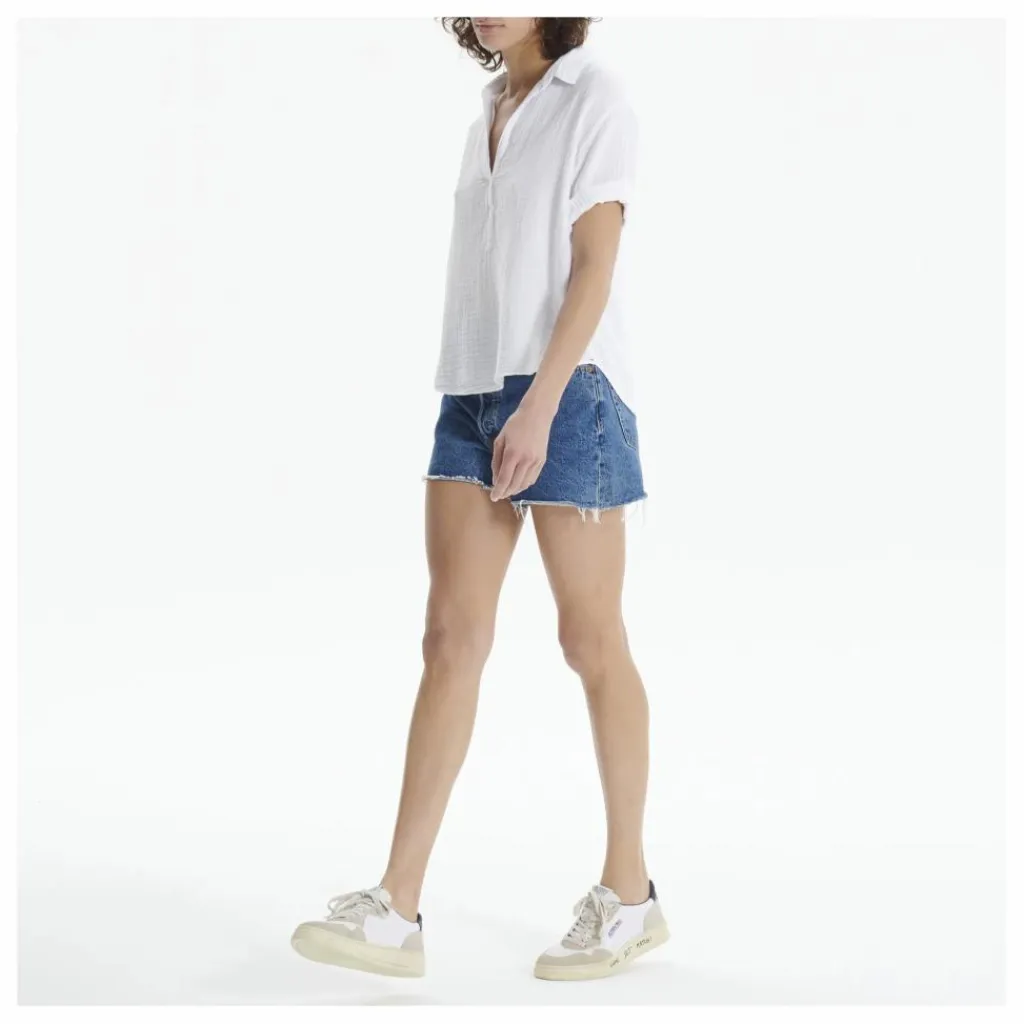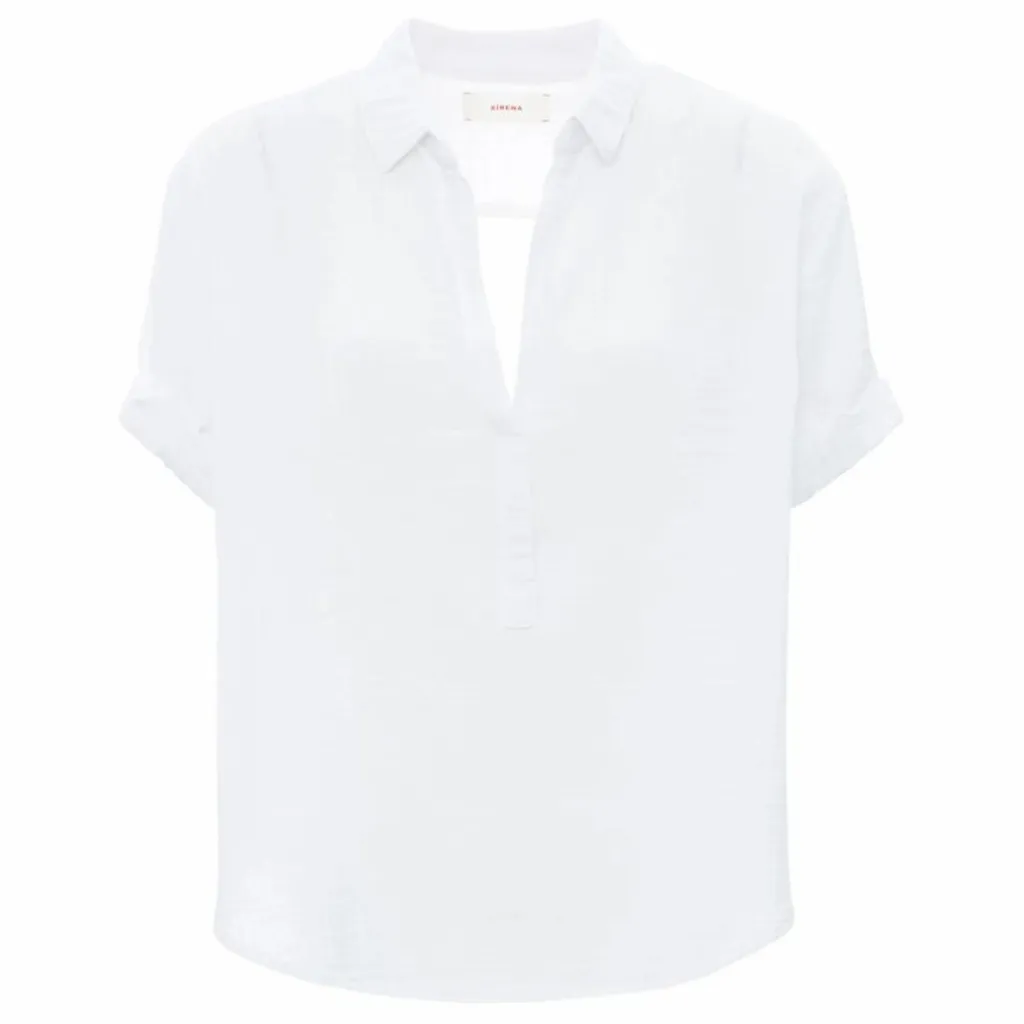 - Arrondi(e) dans le bas, Emmanchures basses, Encolure V, Manches courtes, Revers aux poignets, Souple, Col chemise, Confortable