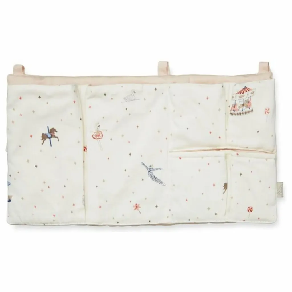 - Une jolie pochette de rangement pratique à installer sur un lit d’enfant pour accueillir les tétines, livres, doudous et autres accessoires indispensables pour la nuit. Pochette de rangement pour lit dans les tons blancs et bruns.