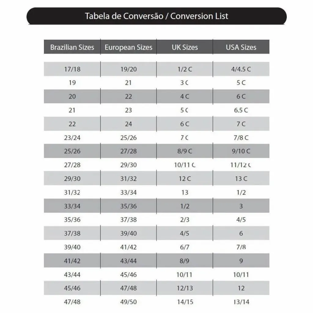 - Les tailles affichées sont des tailles brésiliennes