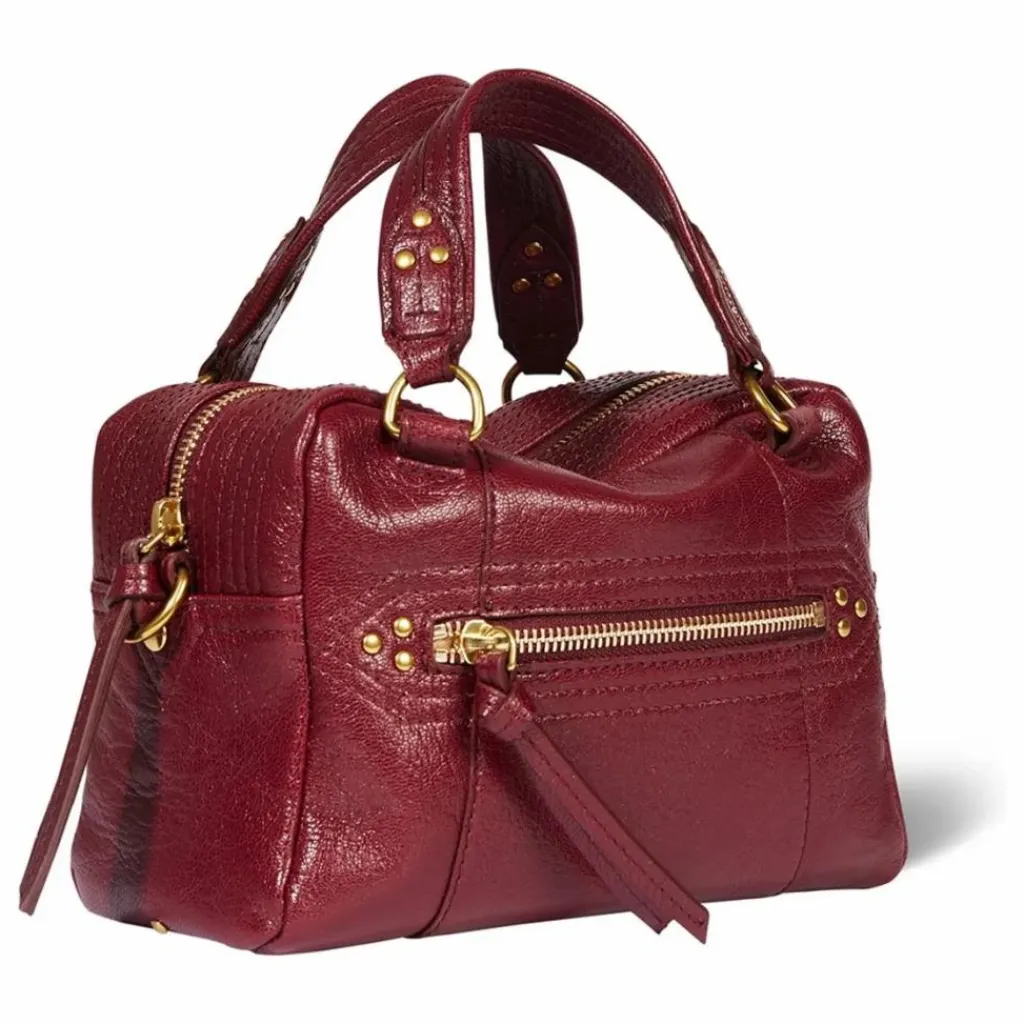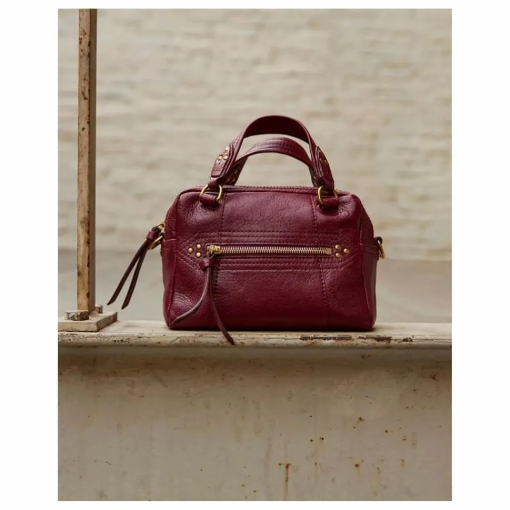 - Sac bowling porté croisé ou à la main. Bandoulière amovible, fermeture zippée avec des liens en cuir.
