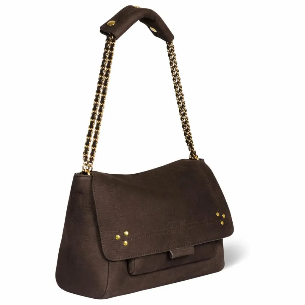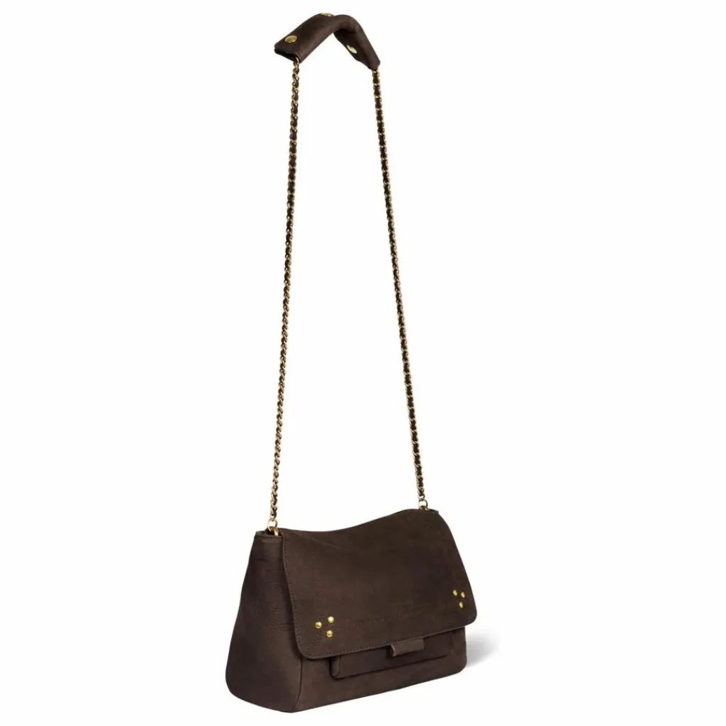 - Sac besace, porté épaule ou croisé. Bandoulière chaîne et cuir, amovible et ajustable. Rabat avec fermeture aimantée.