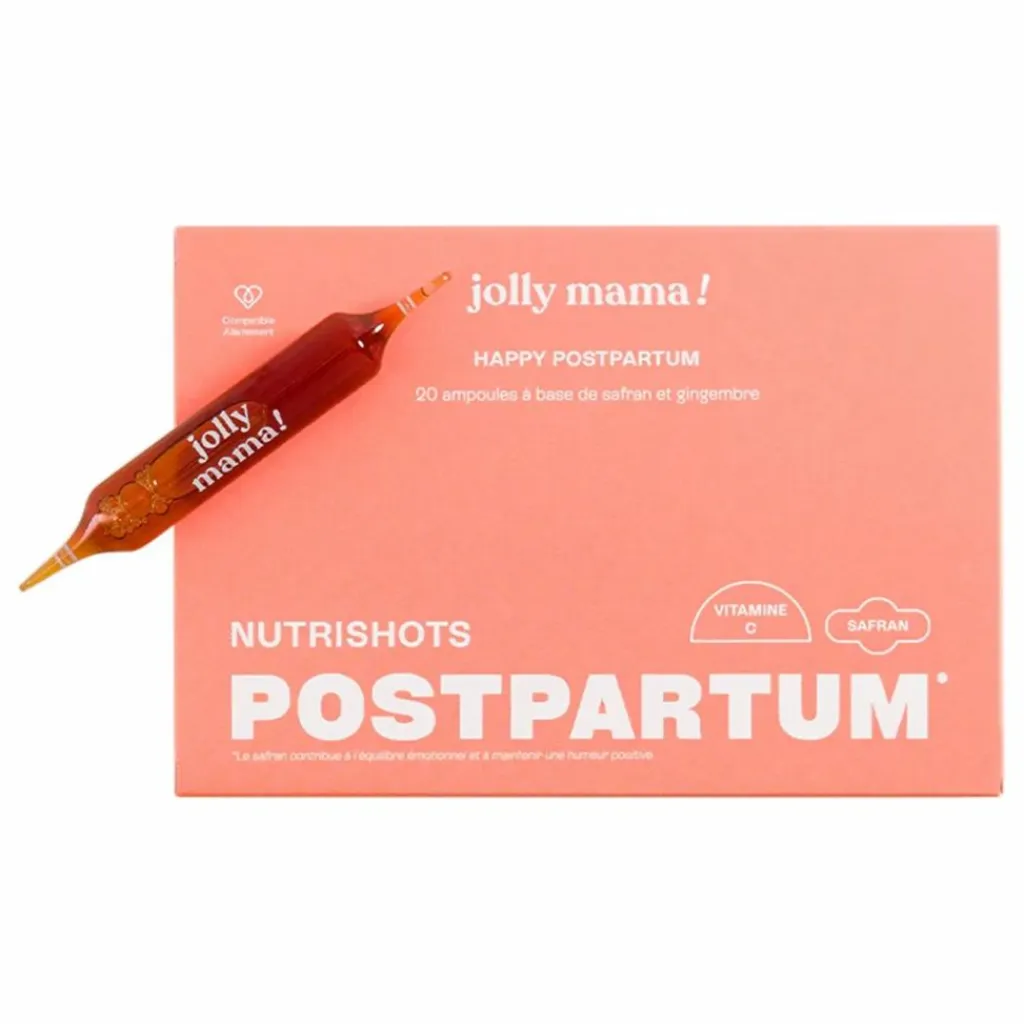 - Nutrishots à base de plantes et de gingembre pour apaiser le postpartum, en agissant sur l’humeur et les douleurs liées.