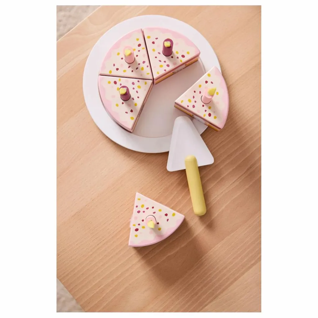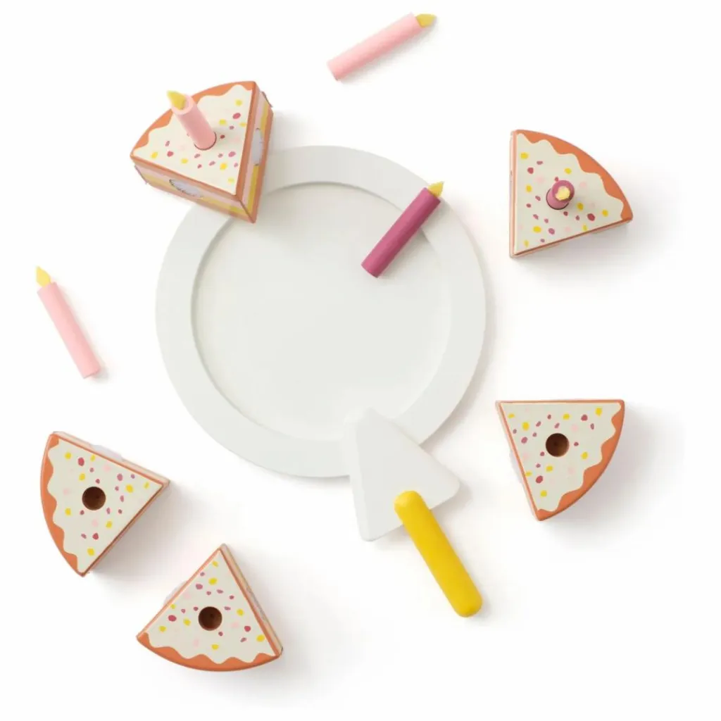 - Gâteau multicolore et amusant, comprenant un plat de service et une pelle, pour toutes les occasions de fête. Contient 5 parts qui se collent les unes aux autres avec un Velcro sur le côté.