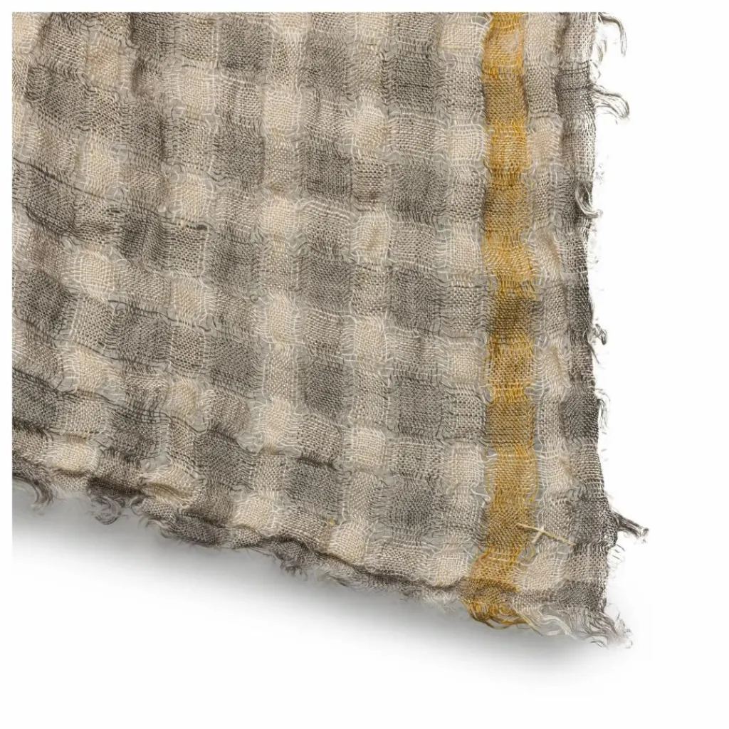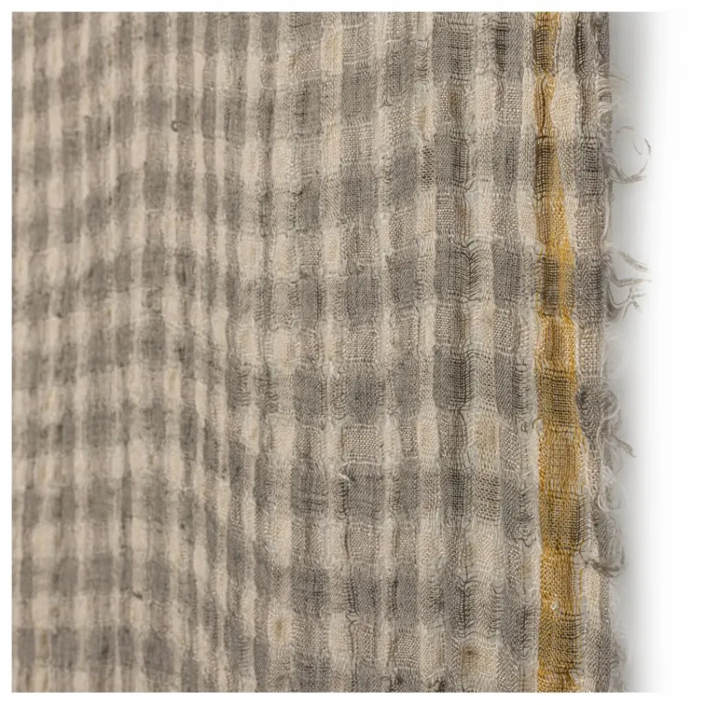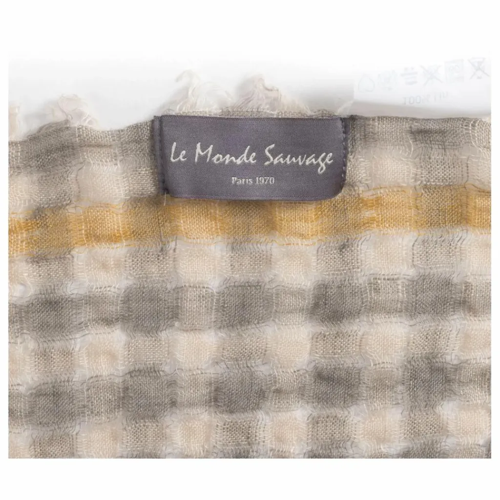- Baptisé Harmattan, vent chaud du Sahara, ce panneau astucieux composé de gaze de lin twiste entre rideau et plaid. De ce nom qui évoque le voyage et l’ailleurs, il garde le côté nomade. Léger comme l’air, il ouvre une fenêtre vers l’extérieur. Facile à emporter, on l’emporte partout et il s’utilise de mille façons : brise-soleil, rideau, plaid, châle, couverture de pique-nique… La bande signature marque les bords de son coloris contrasté. La qualité du lin en volume lui donne de la profondeur, comme s’il était vivant.