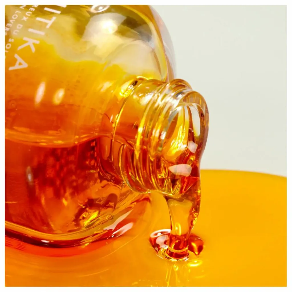 - L’huile de carotte, riche en bêta-carotène, unifie et donne de l’éclat. L’huile de Roucou est un pigment naturel riche en antioxydants qui donne bonne mine. L’huile de Pépins de Framboise, nourissante et douce, elle est réputée pour être naturellement protectrice contre les méfaits du soleil.