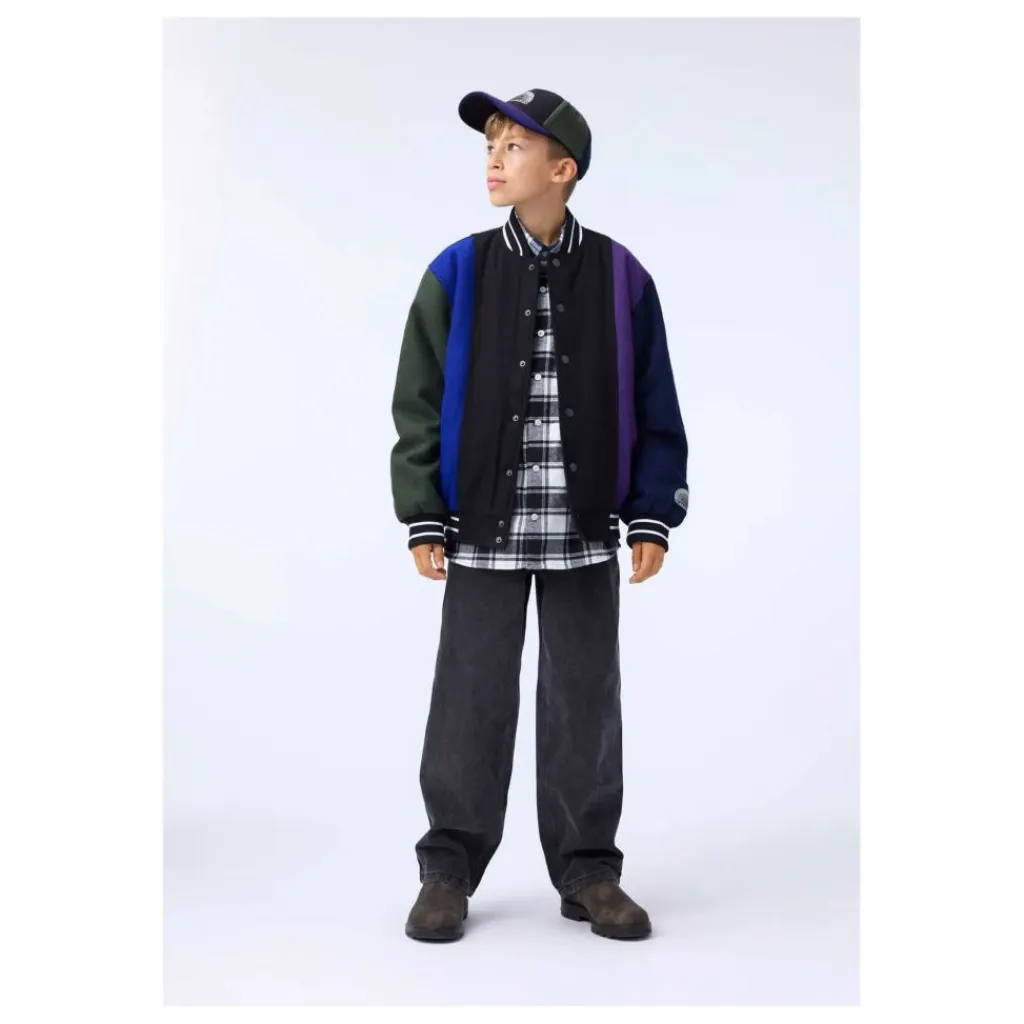 - Cette veste de baseball de Molo est fabriquée en laine mélangée robuste et combine des couleurs noires, bleues, vertes et violettes. La veste se ferme par des boutons sur le devant, a des poches passepoilées sur le devant, ainsi que des bords côtelés rayés au niveau du cou, des manches et du bas. Sa coupe ample permet d’y glisser un pull supplémentaire.