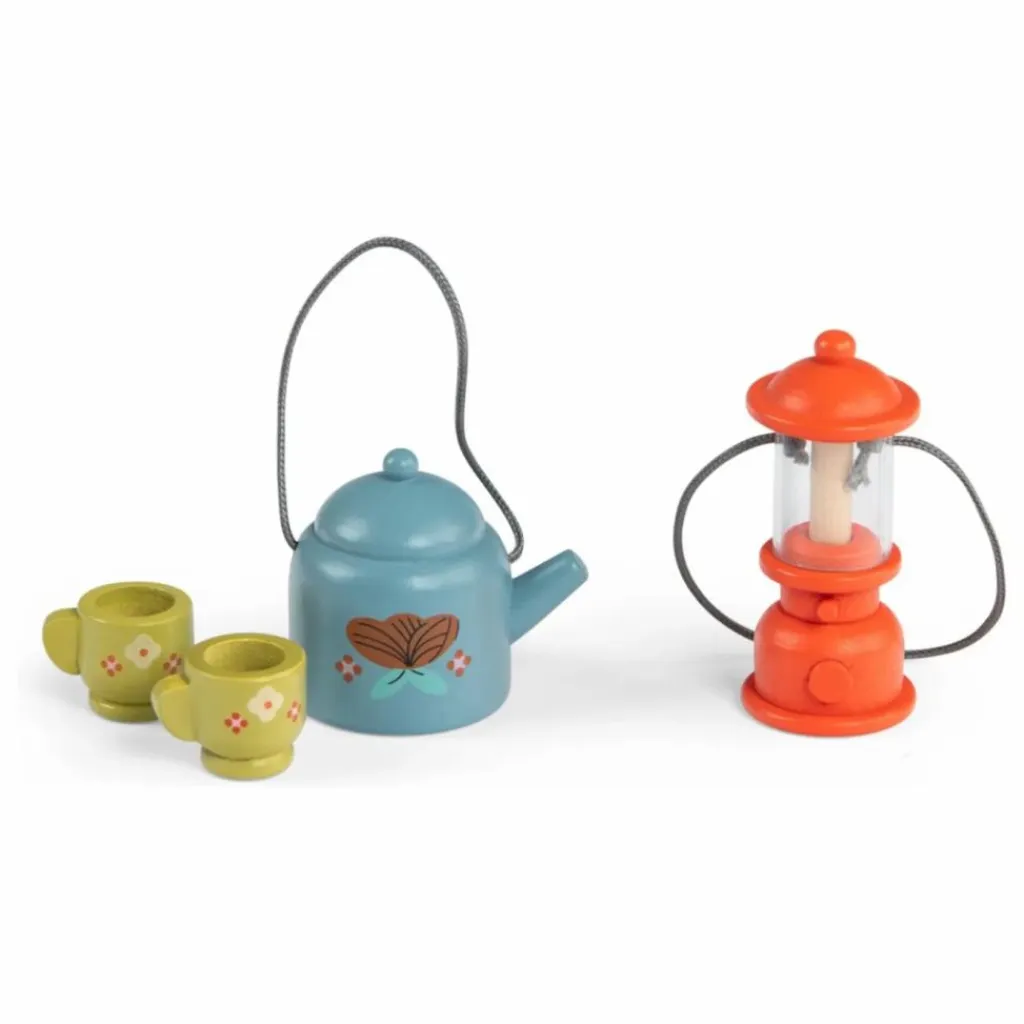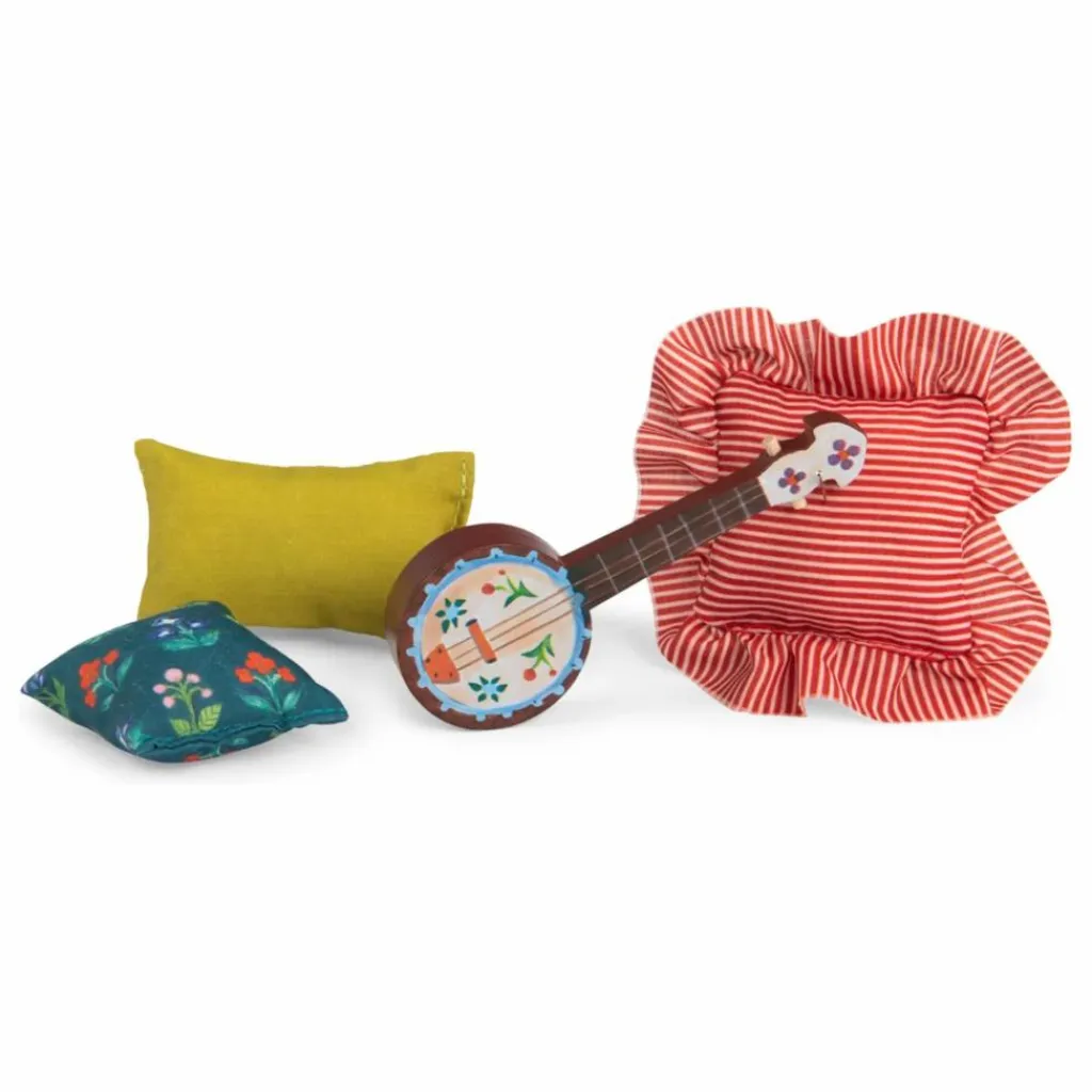 L’occasion pour Nine d’inviter ses amis à la maison. Contenu : banjo, plaid, lanterne, théière, 2 tasses en bois, 3 livres, 3 coussins. Personnages vendus séparément.