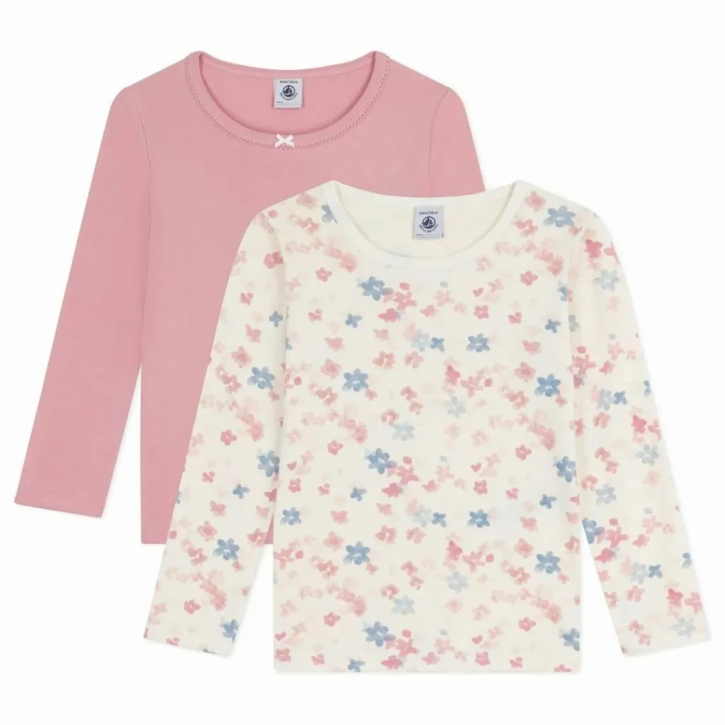 - Ce lot comprend un tee-shirt manches longues en côte 1×1 unie et un tee-shirt manches longues à imprimé fleurs. Finition picots, et nœud sur le tee-shirt uni.