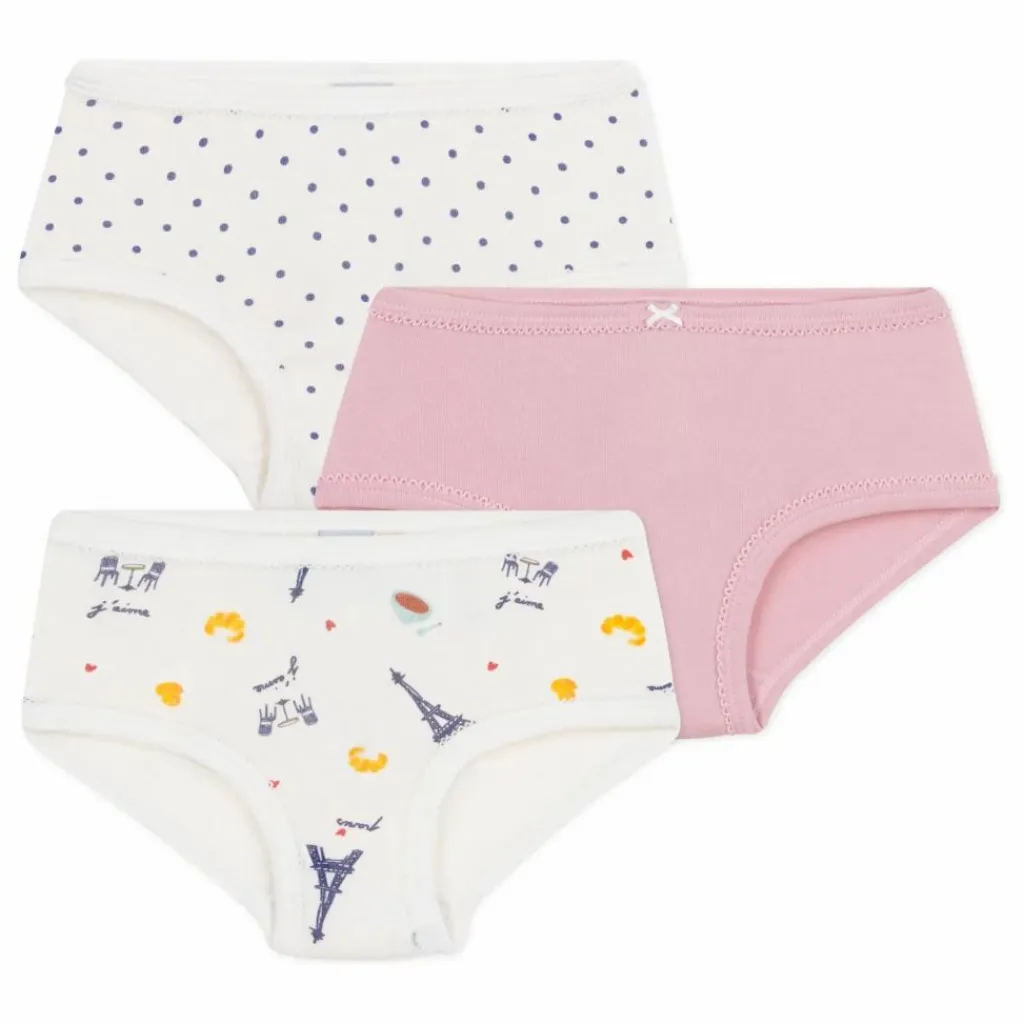 - Forme taille haute plus couvrante que la culotte classique. Ce lot comprend deux culottes à imprimés Paris et petits pois et une culotte en côte 1×1 unie. Finition picots, et nœud sur la culotte unie.