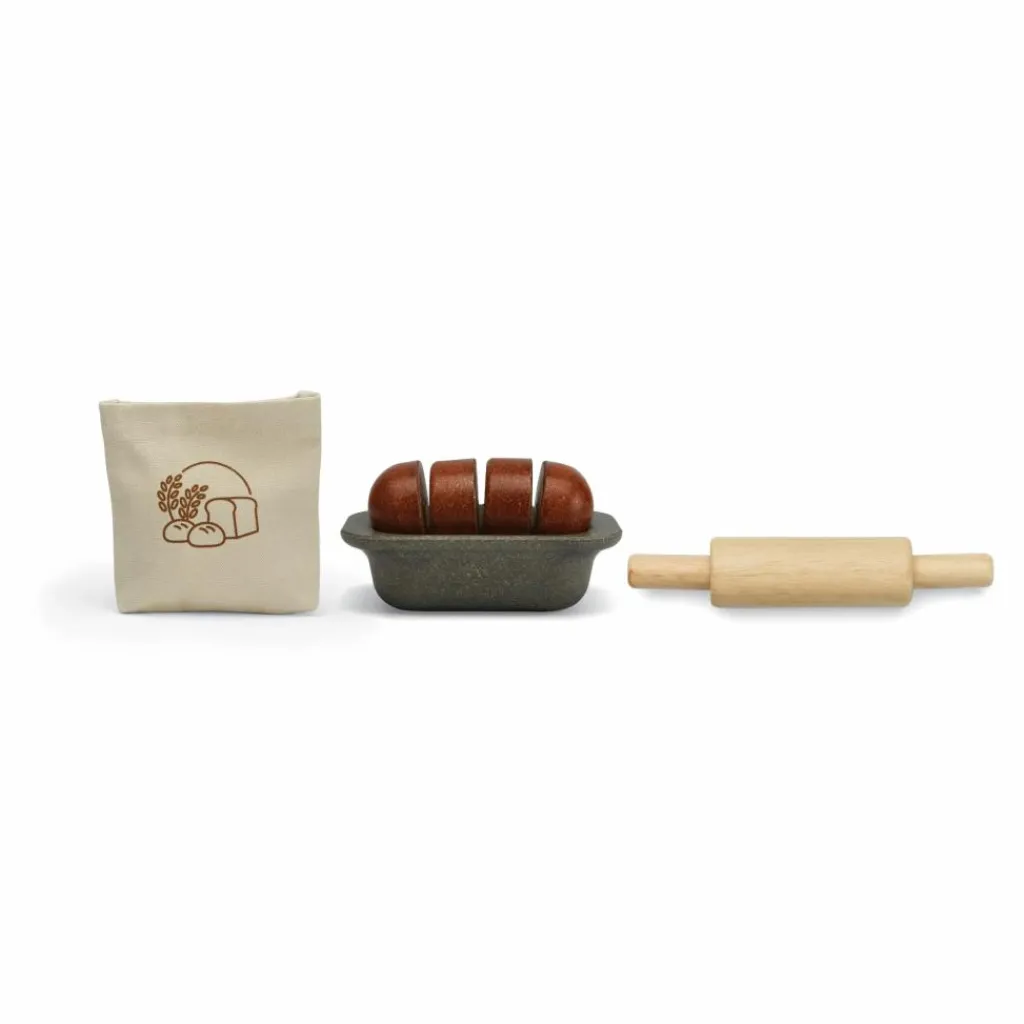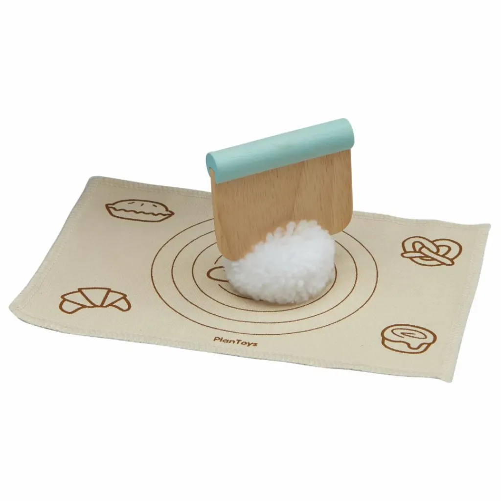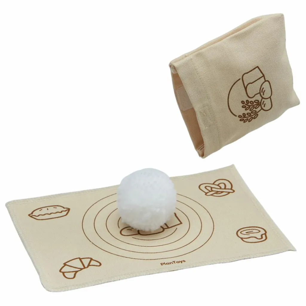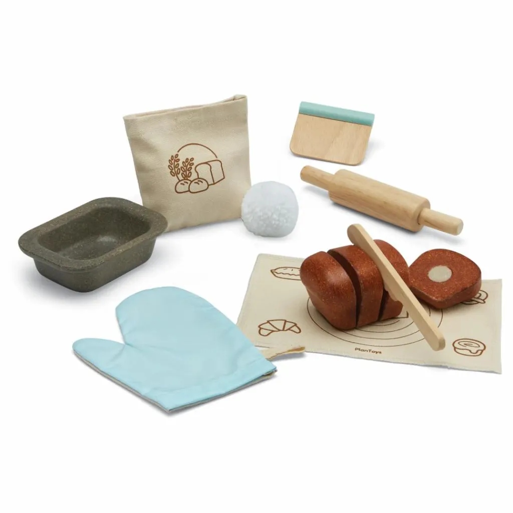 Devenez un véritable apprenti boulanger grâce au kit complet de préparation pour pain PlanToys. Cet atelier est composé de neuf accessoires : un tapis de boulanger, un pain, un coupe pâte (corne du pâtissier), un moule, un rouleau de pâtissier, un couteau à dents, de la farine et son sachet ainsi qu’un gant (pour ne pas se brûler en retirant le pain du four !).